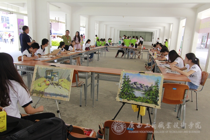 不远处,宿舍楼架空层的技能展示正在进行。“财信系毕业生学生作品展”则现场展示了广告设计与制作专业同学娴熟而独具创意的设计和室内设计技术专业学生现场素描和水粉作画的本领。