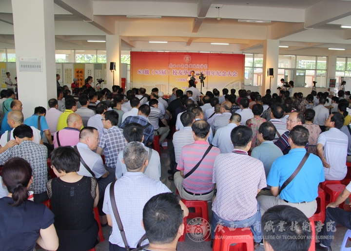 纪念大会上,陈杰院长首先代表学校及校友会致欢迎词,他指出校友毕业30多年来在祖国建设的各条战线,勤勤恳恳,艰苦奋斗,开拓进取,为现代化建设事业奉献青春,为改革开放添砖加瓦,为国家经济发展和社会繁荣做出了积极的贡献。陈院长在讲话中简单介绍了学院近几年的发展变化及60周年校庆筹备情况。最后,陈院长指出,时光荏苒,光阴似箭,时隔三十年后,广商院85届毕业生重聚母校,希望同学们重温青春记忆,共叙师生情谊。