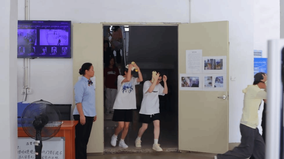 随着演练警铃响起,防震疏散演练正式开始。全体学生立即停止活动,就近在桌椅边、床边或内墙角处就地蹲下,原地等待广播疏散指令,真实模拟地震发生时的场景。各岗位值守的安全管理员和老师们紧急疏导,指挥学生有秩序出宿舍、教室,按照预定的应急疏散通道迅速、有序疏散撤离到空旷场地。安全到达目的地后,老师随即清点人数,报告到指挥处,整个疏散演练安全、快速、有序地完成,充分体现了学校师生对于安全问题的重视和团队协作的精神。