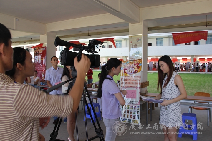 2015年6月27日,广商院2015年毕业生供需见面洽谈会暨顶岗实习企业推介会(简称“双选会”)在校本部教学楼架空层举行,我院以职教成果展演方式引动近200企业入校招聘,“一边看展演一边选人才”的“嘉年华式”双选会广受好评。同样,这样的双选会模式也成为了一个新闻点,吸引了“人民网”、“央广网”、“中国青年网”、“中新网”“南宁电视台新闻夜班”、“广西电视台私家车930”、“南宁电台FM1074”、“南宁晚报”等区内外有影响力的媒体平台入校对我院“双选会”进行相关新闻的报道。同时,校内党委宣传部新闻中心以及各系部学生记者团队也对双选会进行跟踪报道,向校内外提供适时新闻。