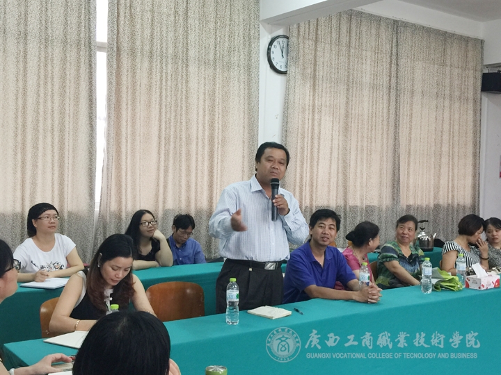 最后,教务科研处韦胜强处长向与会外聘教师介绍了学院近年来招生工作、师资队伍建设工作的发展情况,并就外聘教师提出的意见与建议进行了一一回应。韦胜强处长指出,作为学院师资队伍的组成部分,学院将把外聘教师管理纳入师资队伍建设中,统一规划和管理,今后将从五个方面加强外聘教师的管理工作:一是提高外聘教师待遇;二是建立对外聘教师的奖励机制,如在即将组织实施的青年教师“优质课”评定活动中,把符合条件的外聘教师列入参评对象;三是保证给予外聘教师必要的教学条件,如解决带学生外出参观学习的用车问题;四是加大外聘教师的培训,把外聘教师培训纳入到学院教师培训工作中,定期开展外聘教师交流活动,与学校教师一起共同成长、共同进步;五是提供外聘教师发展的平台,鼓励外聘教师参加各级各类教学技能比赛,如微课比赛、说课比赛、教育技术比赛等等。