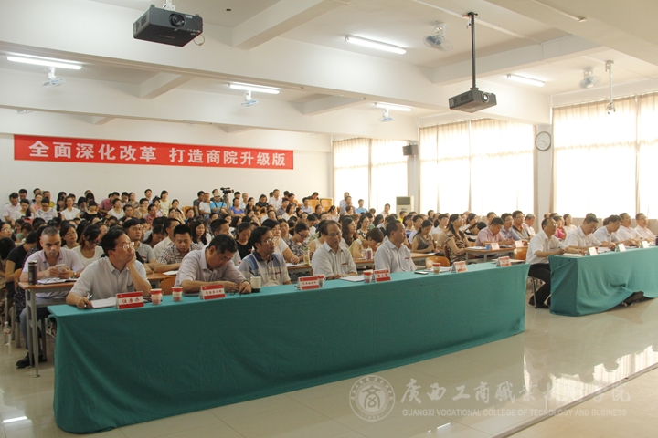 7月20日上午,我院在院本部教学楼一楼报告厅召开了2014-2015学年第二学期期末大会。学院领导、各部门各单位负责人及全体教职员工参加了会议。会议由学院党委副书记、纪委书记蒙启成同志主持。