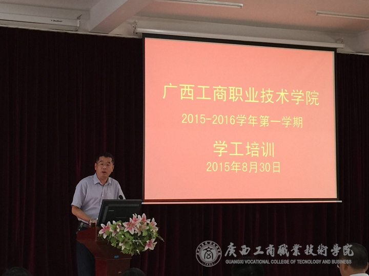 2015年8月30日下午,我院在校本部教学楼2214报告厅举办了2015-2016学年暑假学工培训班,学院党委副书记蒙启成出席并就易班的推广与建设进行培训。学院各系党总支副书记、系学工副主任、就业副主任、全体辅导员,学工部全体人员参加培训。