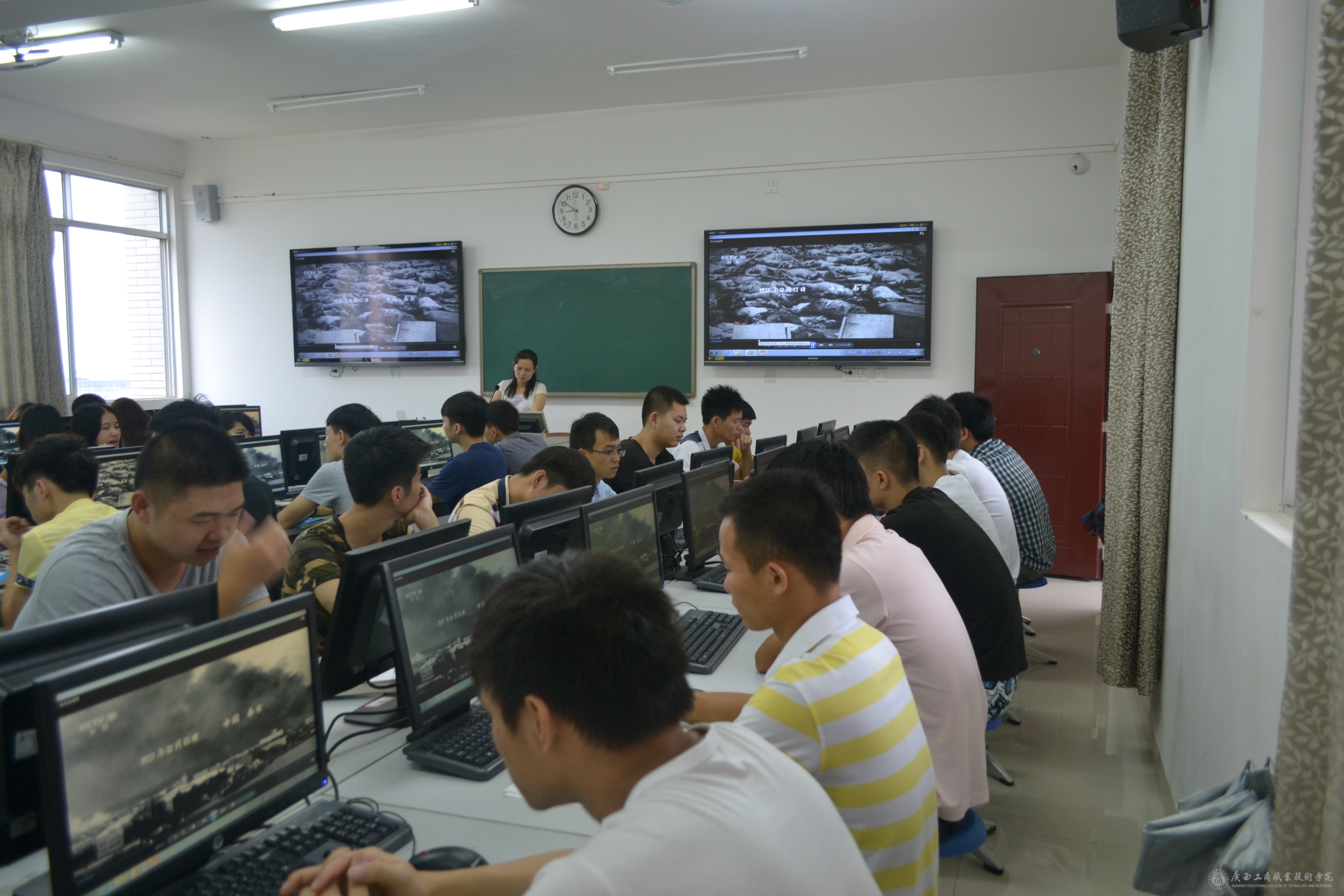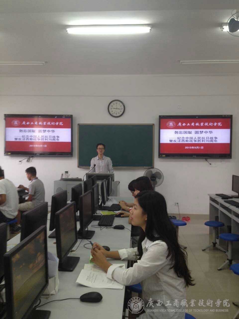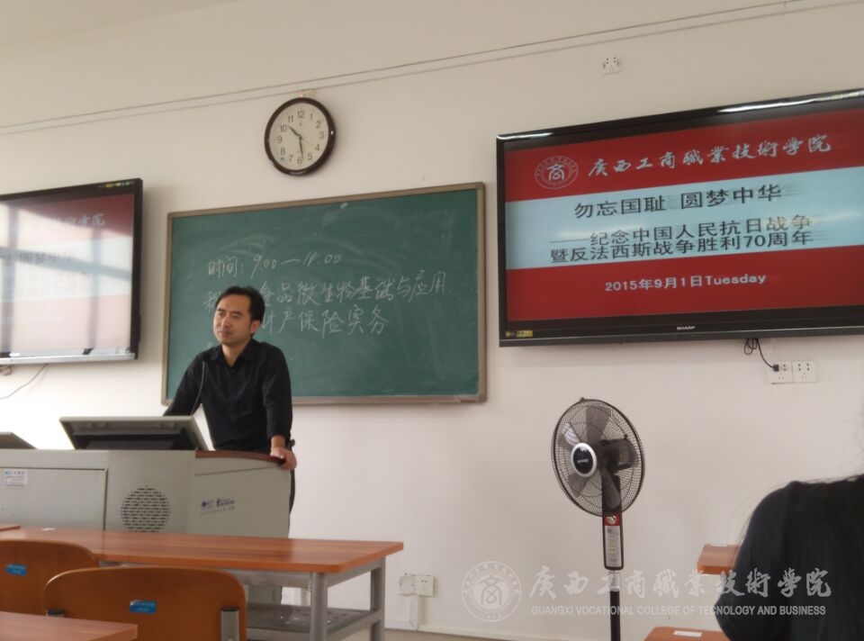 在开学的第一周中,我系教师在同学们的假期结束返校的第一课上,利用课前10分钟或者课间10分钟,为同学们简单的讲述了抗日战争的历史以及抗战胜利的伟大意义,并为同学们播放了由中央电视台、军事科学院政治部、江苏省广播电视总台、陕西广播电视台等单位联合拍摄的八集大型纪录片《东方主战场》的第一集《东方危急》的一小段,并让同学们利用课余的时间,自行观看这部纪录片,了解历史,勿忘国耻,要继承和弘扬抗日民族统一战线优良传统。