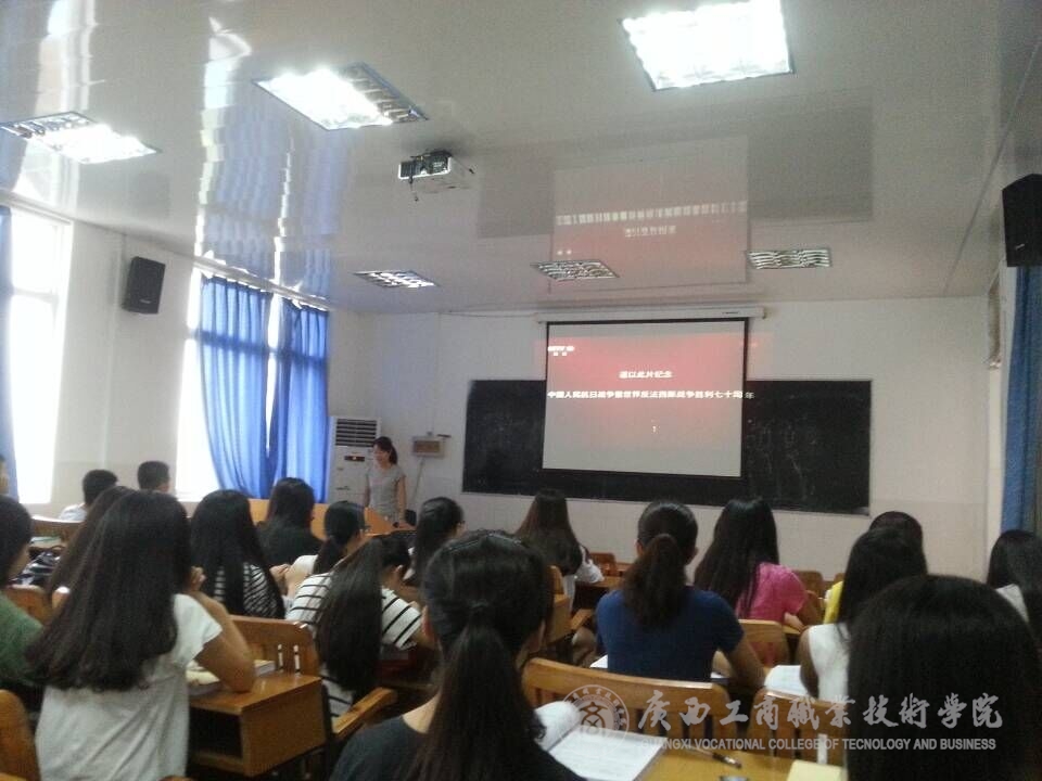 为了让同学们铭记悲惨的历史,激发学生的爱国热情,进一步弘扬爱国主义精神。我系于9月1日开展了关于“勿忘国耻 ·圆梦中华”主题班会。主题班会主要围绕“纪念中国人民抗日战争暨反法西斯战争胜利70周年”等展开。同学们观看《东方主战场》等教育视频,了解了抗战胜利的伟大意义。并且了解了中华人民同仇敌忾,前赴后继,英勇斗争的全民族的伟大抗战精神,他们用鲜血和生命谱写了正义战胜邪恶、光明战胜黑暗、进步战胜反动的英雄史诗。