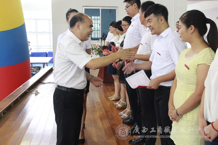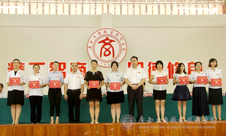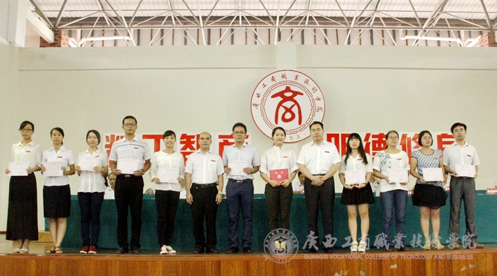 在庆祝教师节大会上,李仕钦副院长宣读了学2014-2015年优秀辅导员、班级主任的表彰文件。覃武云书记、陈杰院长为获奖的老师颁奖并与受表彰的老师合影留念。