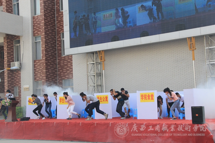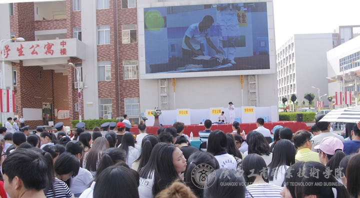 为了进一步加强学校安全工作,增强学校师生消防安全意识,提高学生对突发事件的应急扑救处置能力,2015年9月15日下午,我院在校本部篮球场举办了2015年度应急演练活动。学院副院长李仕钦、南宁市西乡塘消防大队领导、学院相关部门负责同志出席活动,学院2015级全体学生参加活动 。活动由后勤管理处副处长莫春华主持。