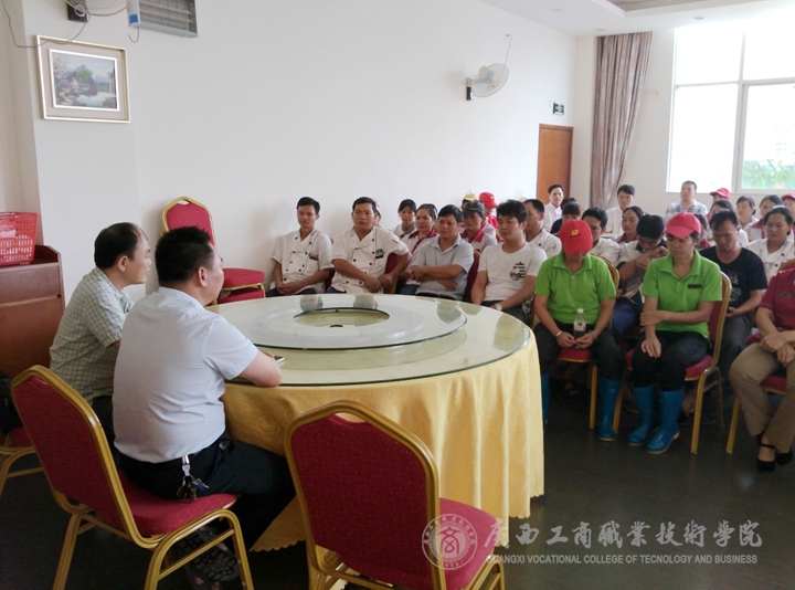 9月16日中午13:00,根据上级领导机关的工作安排,为配合南宁市国家卫生城市复查工作,学院在食堂二楼召开了食堂所有员工工作会议,后勤管理处(保卫处)莫春华副处长及食品卫生科人员参加了会议。