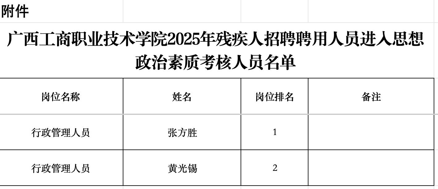 附件:pp电子官方网站2025年残疾人招聘聘用人员进入思想政治素质考核人员名单