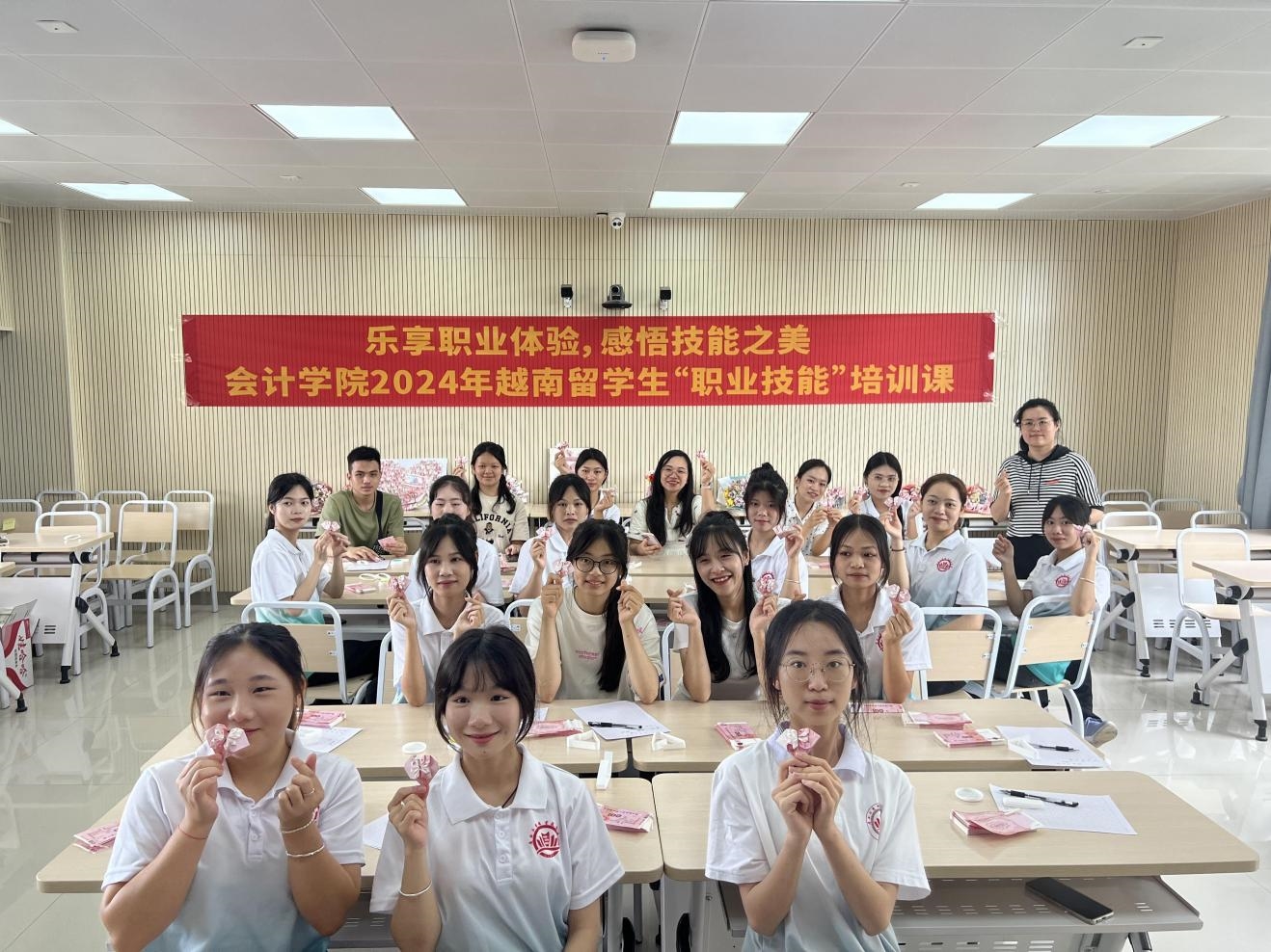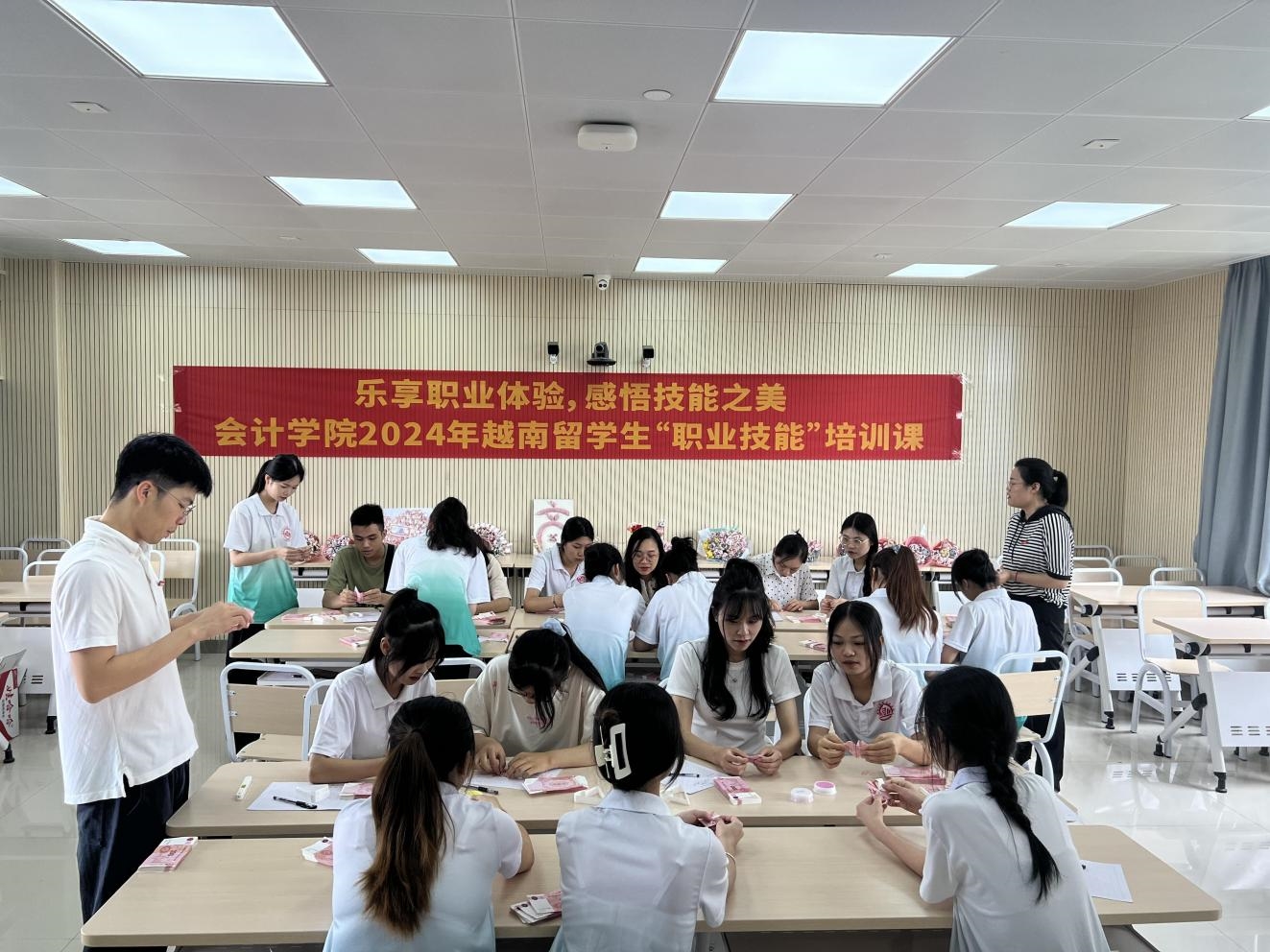 为贯彻落实“一带一路”倡议,深入贯彻党的二十大精神,更好地切实推进加强与东盟国家的教育交流,推进与东盟国家的职业教育合作,同时进一步推进学院国际交流相关工作。我院于6月26日在武鸣校区A2-305教室举办“乐享职业体验,感悟技能之美”—— 2024年越南留学生混班研学培训课程。本次活动旨在通过混班研学,让越南留学生深入体验中国会计职业的魅力,由我院钟小林老师主讲。