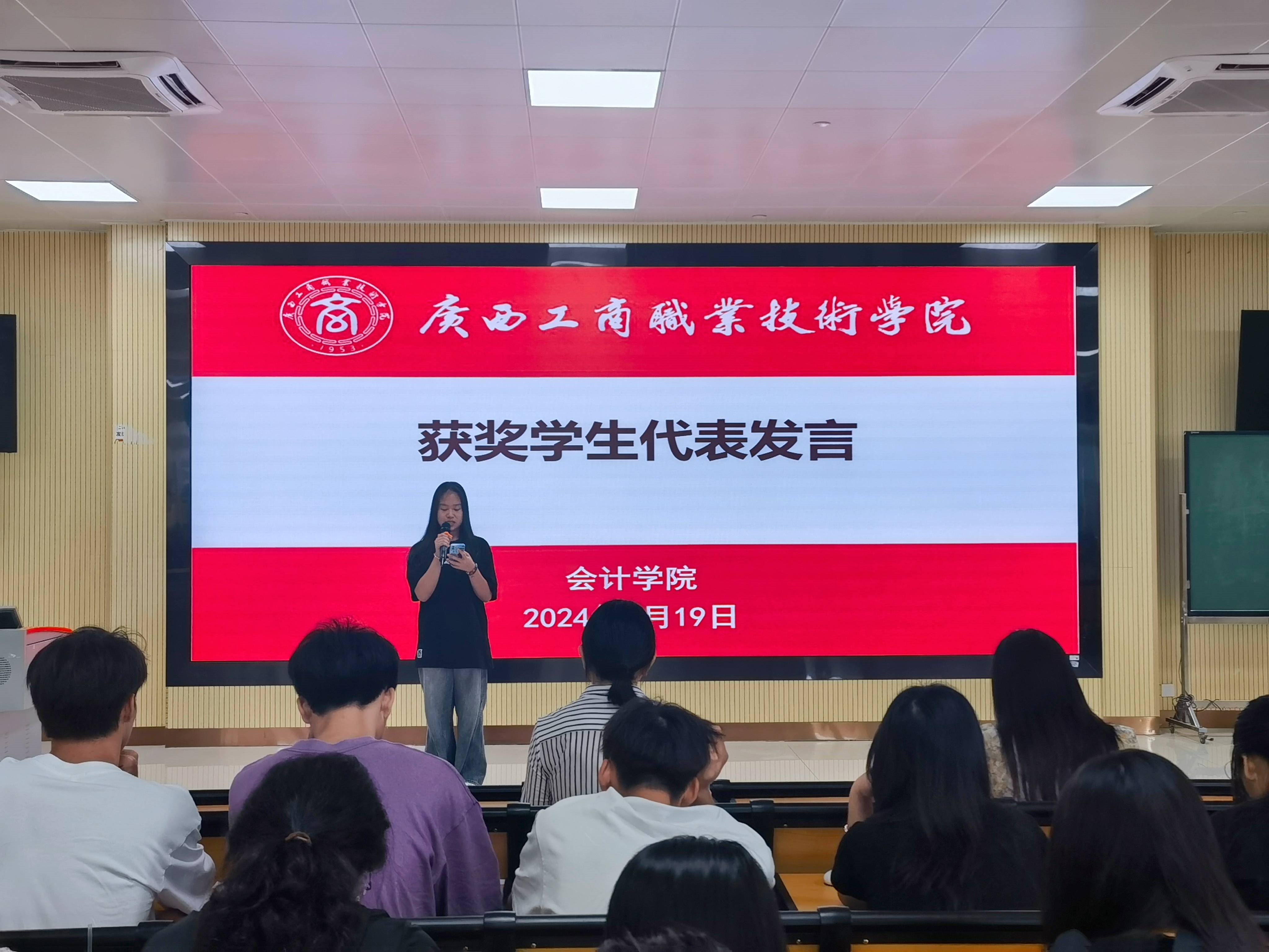 会计学院2023-2024学年第二学期财税大数据应用专业实践活动已顺利告一段落,为总结经验以及表彰先进,树立楷模,让同学们更好的领会此次专业实践活动的重要意义,2024年6月19日,会计学院在武鸣校区A3-101阶梯教室召开实践活动总结表彰大会。此次会议由黄颖老师主持,与会人员有会计学院教学副院长谭玉娥、教务科科长梁亚兵、教学秘书梁月华以及2022级财税大数据应用专业全体在校学生。