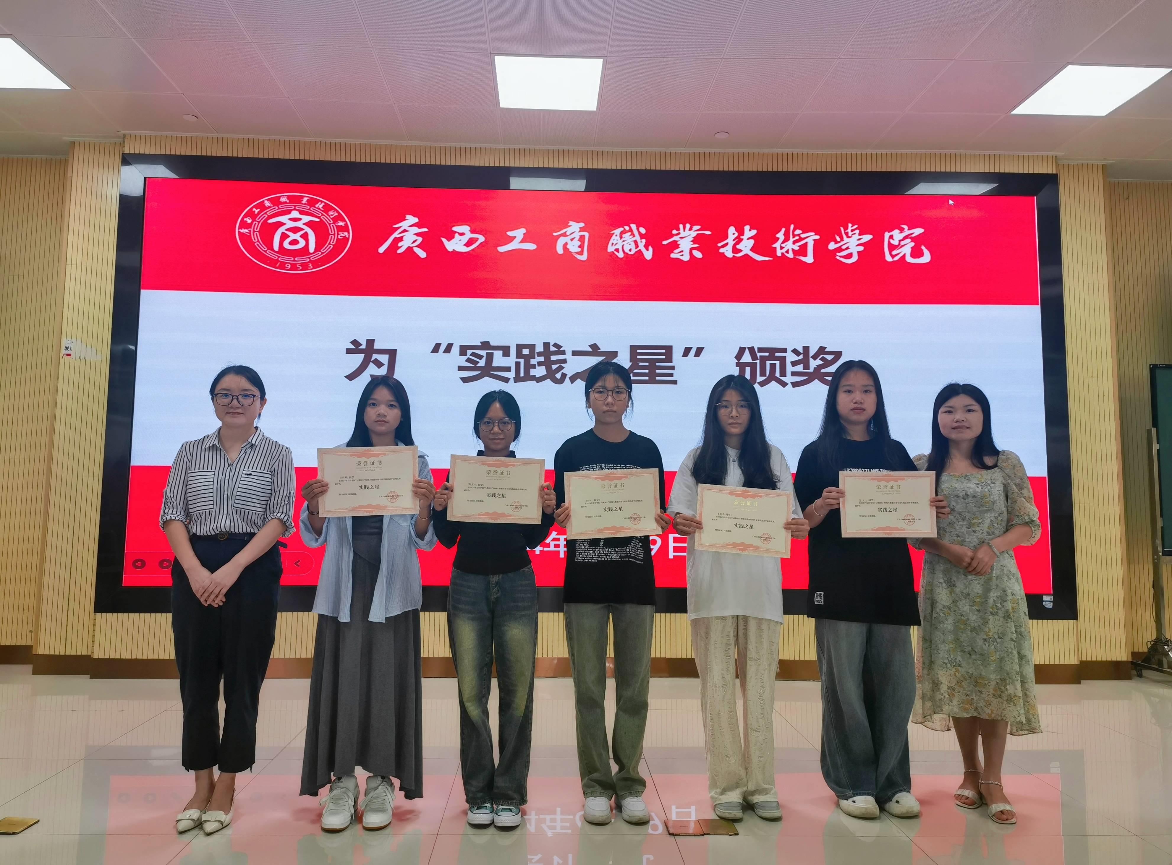 本次总结表彰大会共有四项议程:首先,由黄颖老师为大家播放税局实践活动回顾视频,重温同学们开展志愿服务活动的难忘瞬间,总结本次专业实践活动累计参与学生98人,累计志愿者服务时长为1470个,累计服务3868家企业。其次,由副院长谭玉娥为全体同学做总结发言,谭玉娥高度认可同学们在税局实践活动中的优异表现,同学们的积极表现也得到纳税人以及税务局工作人员的一致认可和好评,同学们圆满地完成了此次专业实践任务;同时谭玉娥副院长鼓励同学们再接再厉、在校外实习即将拉开序幕之际充分利用专业所学找准就业方向,在今后的生活和学习中不断完善自我。随后,由谭玉娥副院长与梁亚兵科长为实践活动中表现优异的12位同学颁发“实践之星”荣誉证书并合影留念;最后,由获奖学生代表数税2201班陈兰兰同学发表感言。