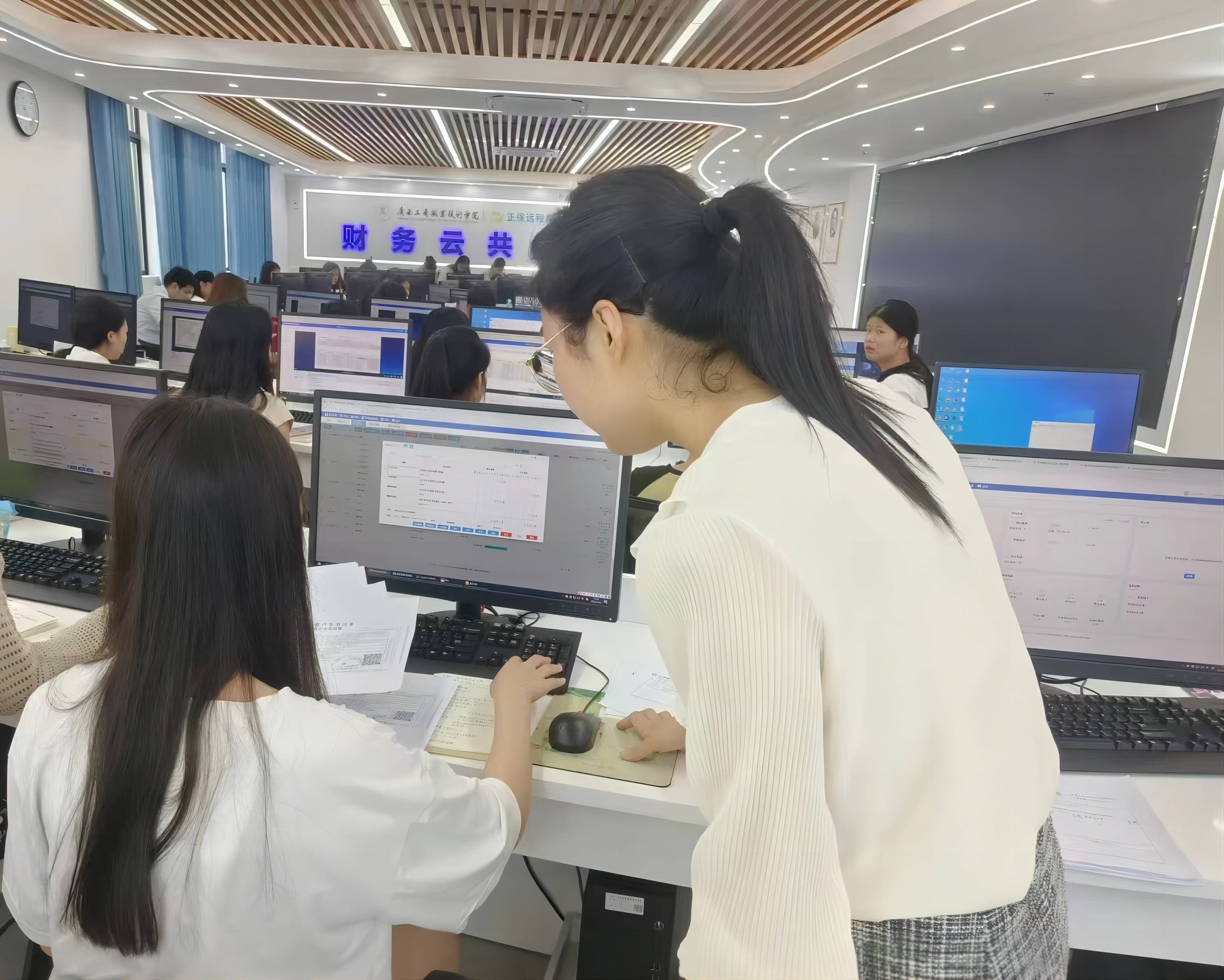 图2: 老师指导同学们进行真账实操