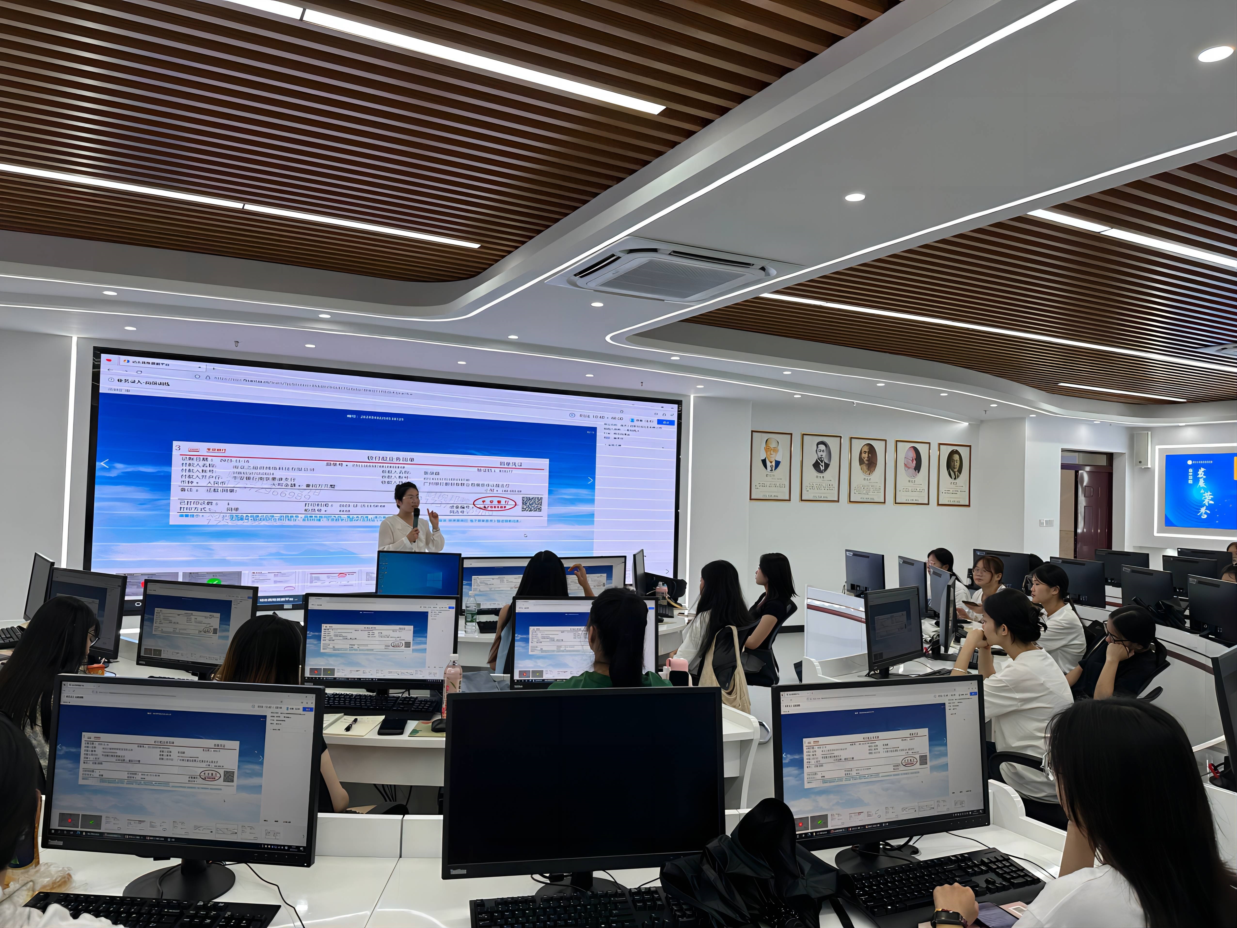 课堂上,拥有丰富的工作经验与理论知识的企业老师们带领“正保班”同学们开启云端“企业真账”实训,同学们积极讨论,热情互动,课堂氛围轻松。在真账平台业务夯实的基础上,将即将步入实习岗位的22级“正保班”全体学生通过分组团队合作的形式,在唯易财务软件系统完成112家企业2024年4月份与5月份账套的全流程账务处理。通过做真账实操,实现实训即实践,切实提高学生真账实操能力,帮助学生将课堂学习的财务知识与企业的实际情况零距离衔接运用,增强学生的财经类岗位工作能力,培养能直接和企业需求对接的数智化财经类人才。