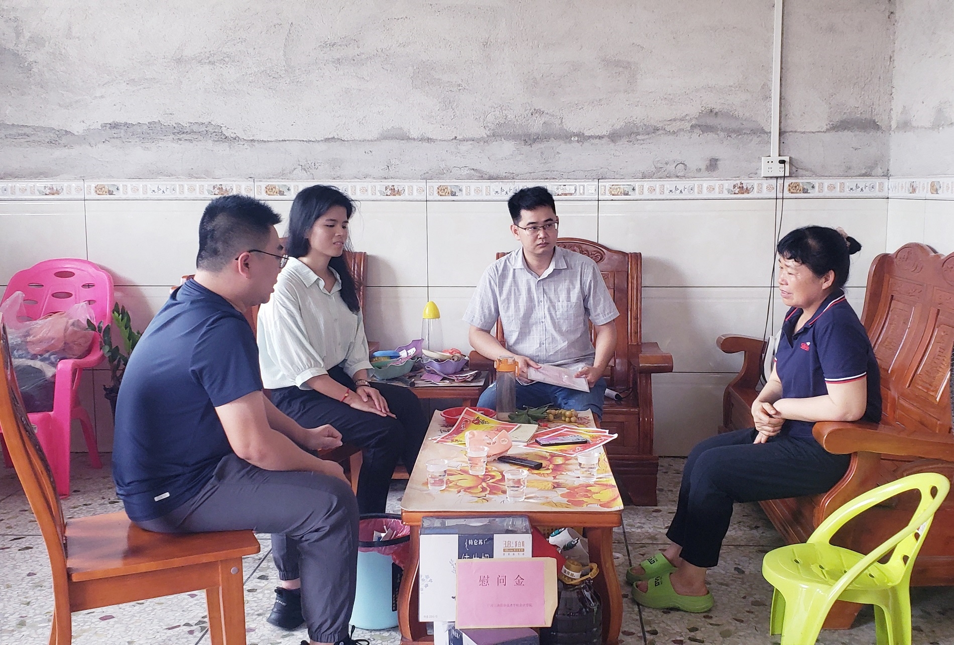 在走访的过程中老师们与家长进行面对面的沟通和交流,深入学生家中了解其家庭情况和主要经济来源。梁磊老师为学生家长详细讲解国家的资助政策和学院的基本概况,辅导员吴小梅和钟仁和也向各自所带学生家长反馈学生在校的学习和生活情况,进一步加强了家校沟通与交流。