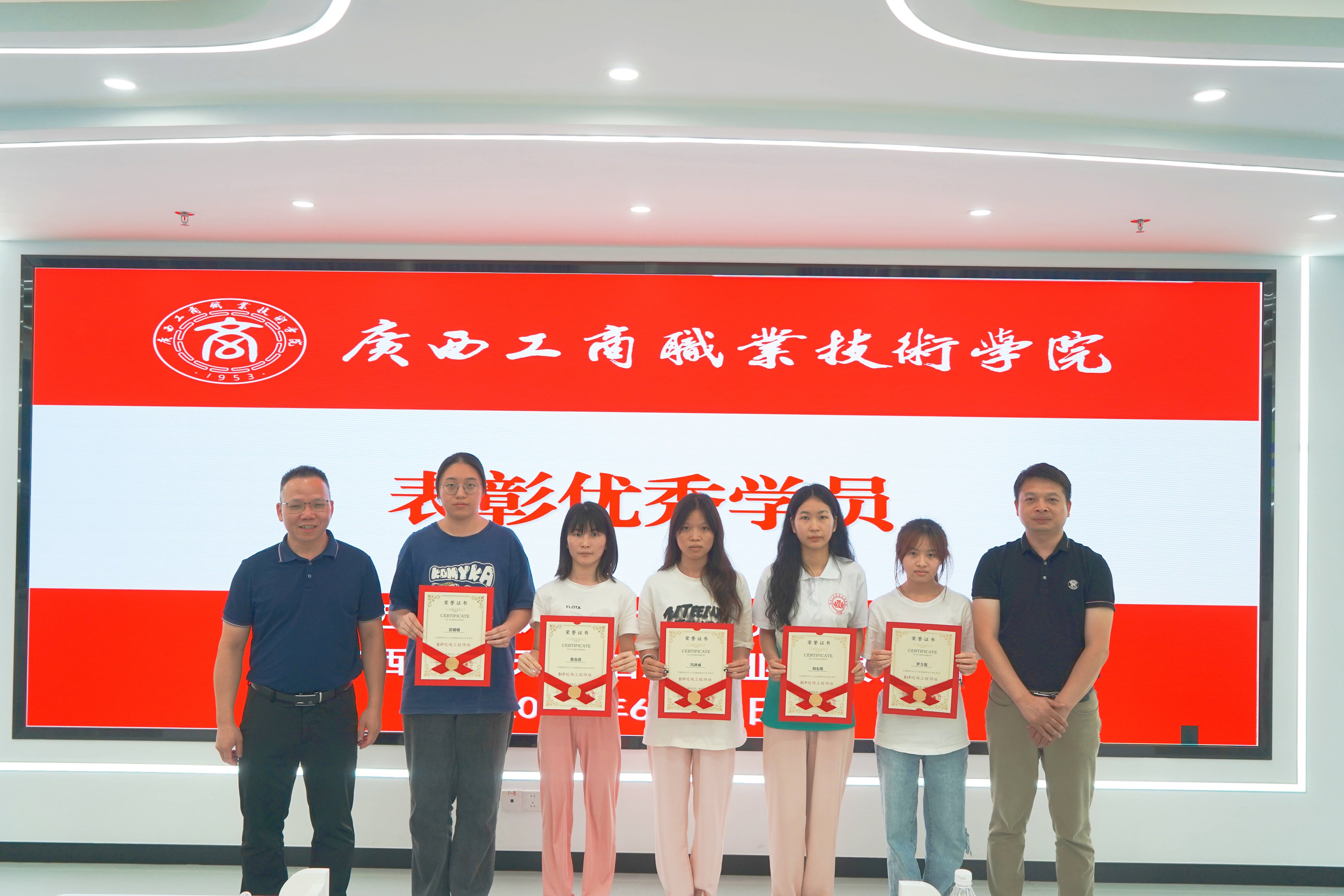 阙勇平副校长肯定了会计学院与布道天下信息产业有限公司在产教融合校企合作方面的成效,强调了产教融合在双高建设中的重要性,同时感谢布道天下公司给予同学们提供的学习和实践的机会,鼓励同学们努力学习,考取BIP证书,成为数智产业的优秀工程师。总结会上还对5名优秀学员进行了表彰,并颁发了证书。