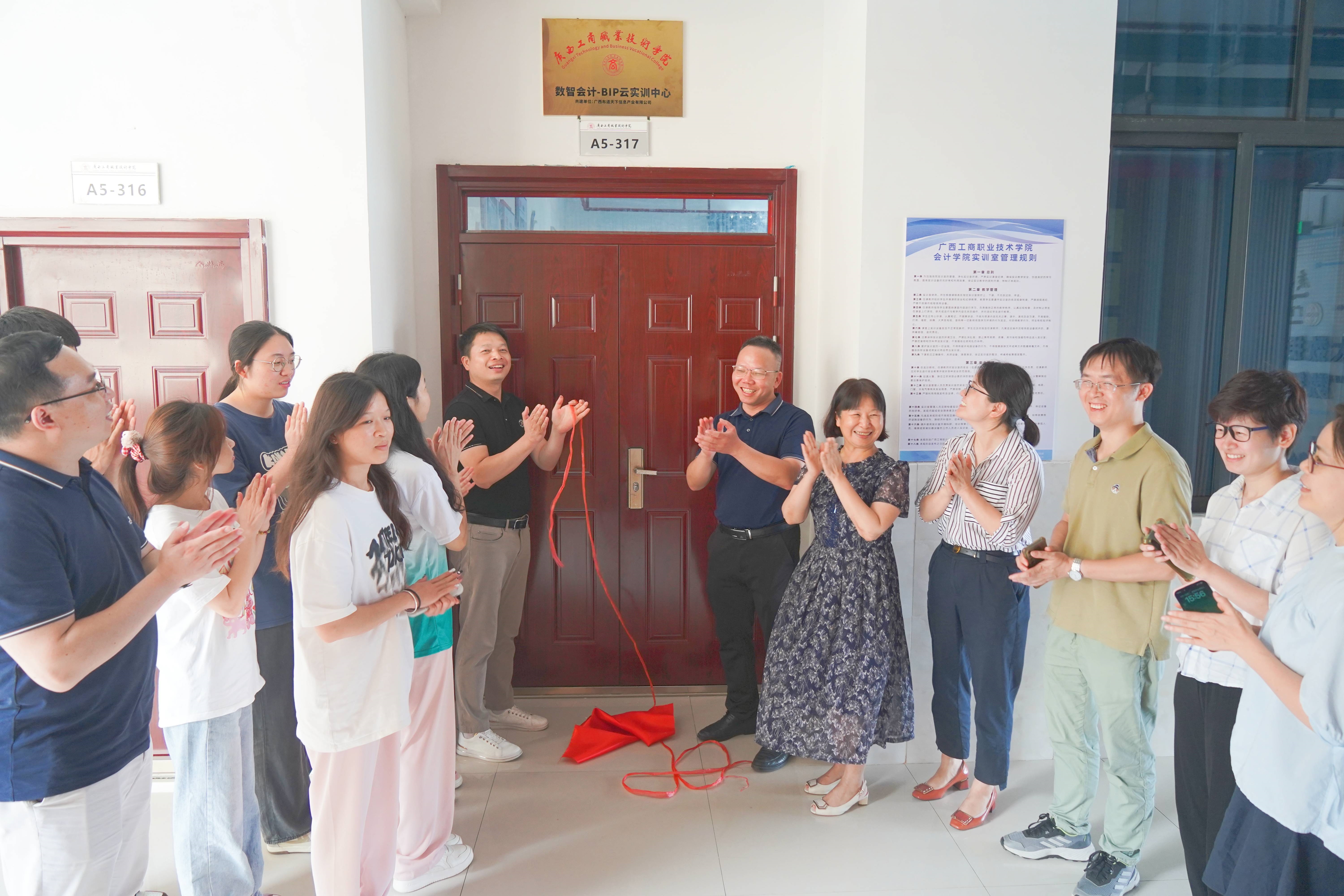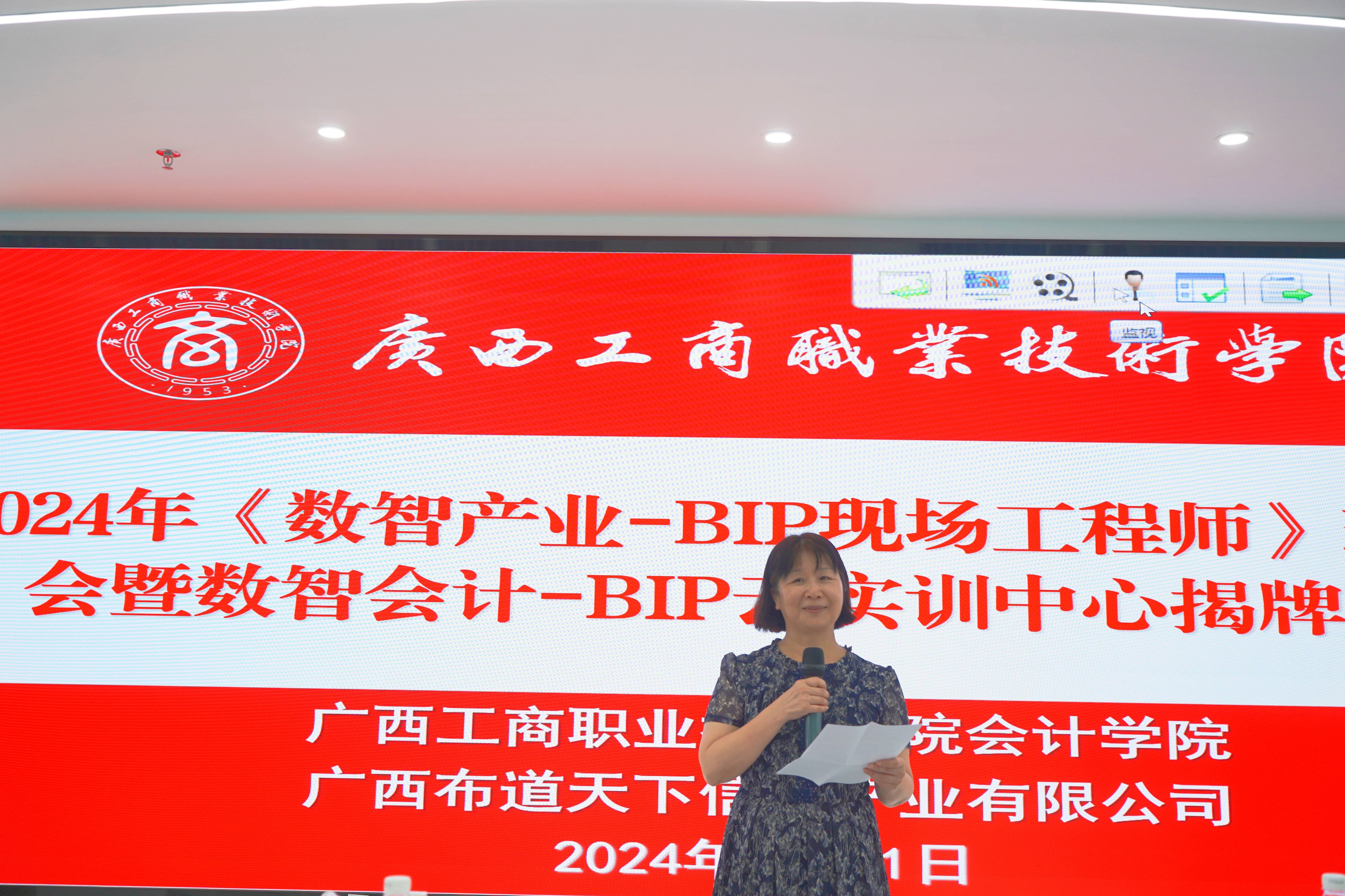 会计学院副院长谭玉娥、教研室主任赵冉、会计信息管理专业带头人余伟、广西布道天下信息产业有限公司总经理袁开、技术总监张凌坤、企业导师吴泓以及《数智产业-BIP现场工程师》班全体学生参加。