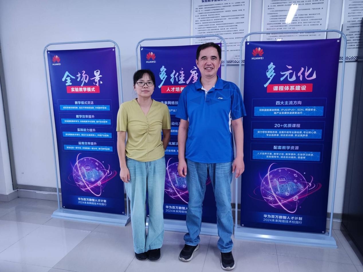 2024年5月31日,信息与设计学院教师杨名、吴燕赴南宁学院参加“华为百万数智人才计划——2024未来网络技术校园行(广西站)”活动。本次活动由华为技术有限公司主办,南宁学院承办,旨在围绕数据通信前沿技术,共同研习新一代网络通信技术。来自不同院校的40余名网络相关专业教师参加了本次培训,共同学习了IPv6、IPv6+、SDN园区网络技术及应用。依托Talent实训平台,参培老师们现场进行了分组实验,切身感受了DemoCloud 2.0方案真机实训的魅力。