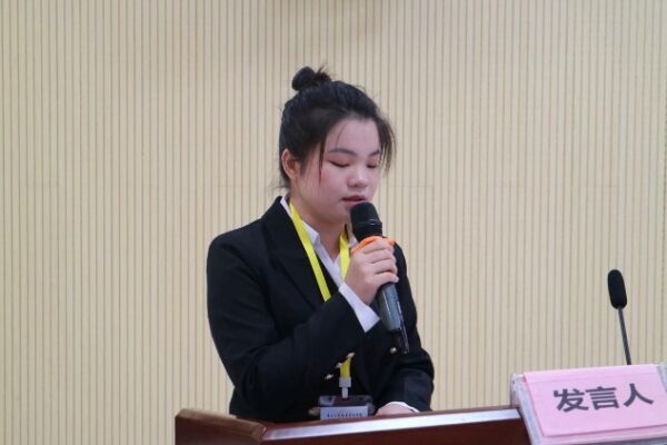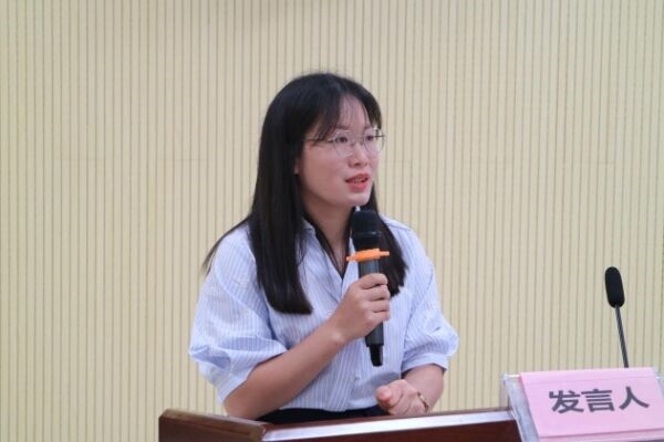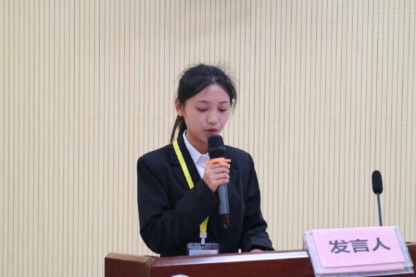 图为23级学生会主席团成员何嘉绮发言