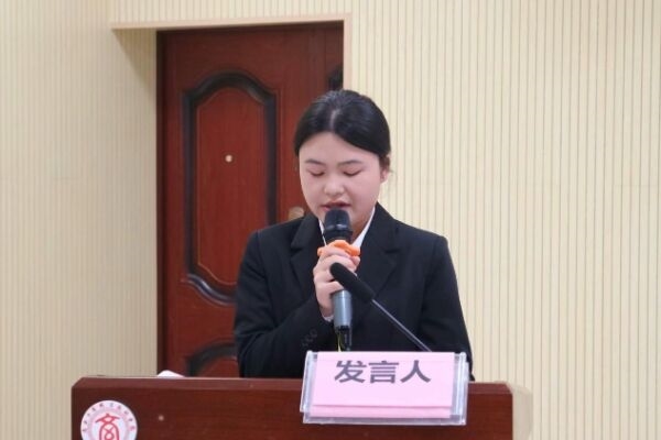 图为管理学院团委学生副书记檀秋宇发言
