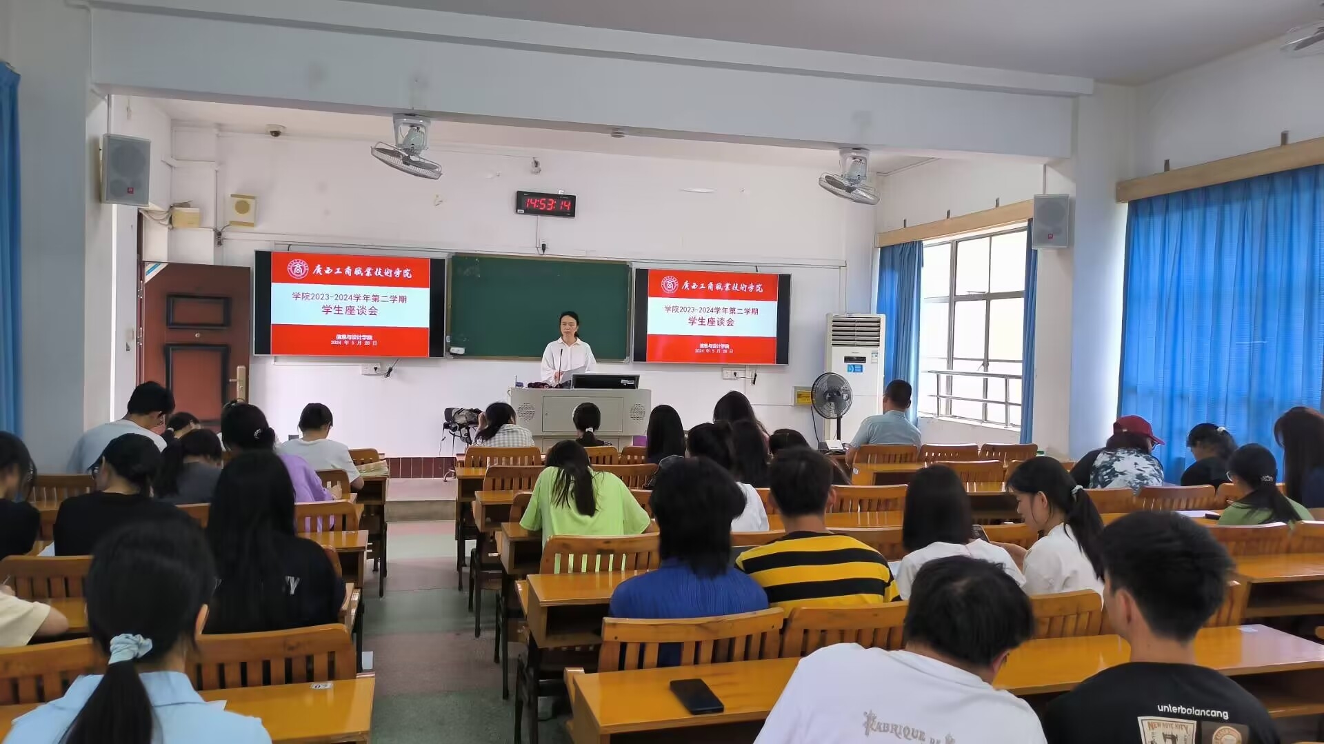 为深入了解学生对2023-2024学年第二学期课堂教学情况的意见和建议,进一步提高我院的教学管理水平和教学质量,我院于2024年5月28日下午分别在鹏飞校区和中尧校区开展2023-2024学年第二学期课堂教学情况反馈座谈会。各教研室主任、专业带头人共12名教师和2022级、2023级各班学生代表共155人参加此次座谈会。