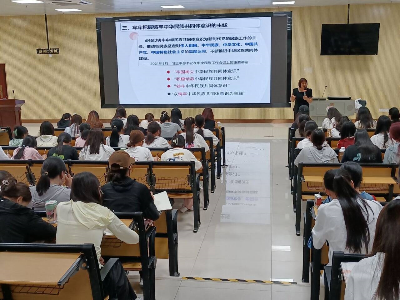 在此次的课程中,陶艳兰老师为学员们讲述了“中华民族多元一体格局的科学内涵”“坚定不移地走中国特色解决民族问题的正确道路”“以铸牢中华民族共同体意识为主线”等内容,强调了在新征程中要坚持和完善民族区域自治制度,加强和改进党的民族工作,全面推进民族工作团结进步。本次课程让学员们对党和民族团结有了更深刻的认识,同时也让学员们明白了,民族团结就是要让各民族像石榴籽一样紧紧地抱在一起,更加紧密地团结起来。无论是在学习还是生活中都要高举中华民族大团结的伟大旗帜,为民族团结进步和实现中华民族伟大的复兴而努力奋斗。
