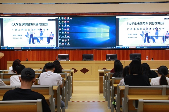 根据团区委服务大学生就业引航计划安排,学院团委邀请企业专家唐丽婕于5月25日上午9点在武鸣校区开展《大学生求职陷阱套路》讲座,鹏飞校区,中尧校区采取线上收听。