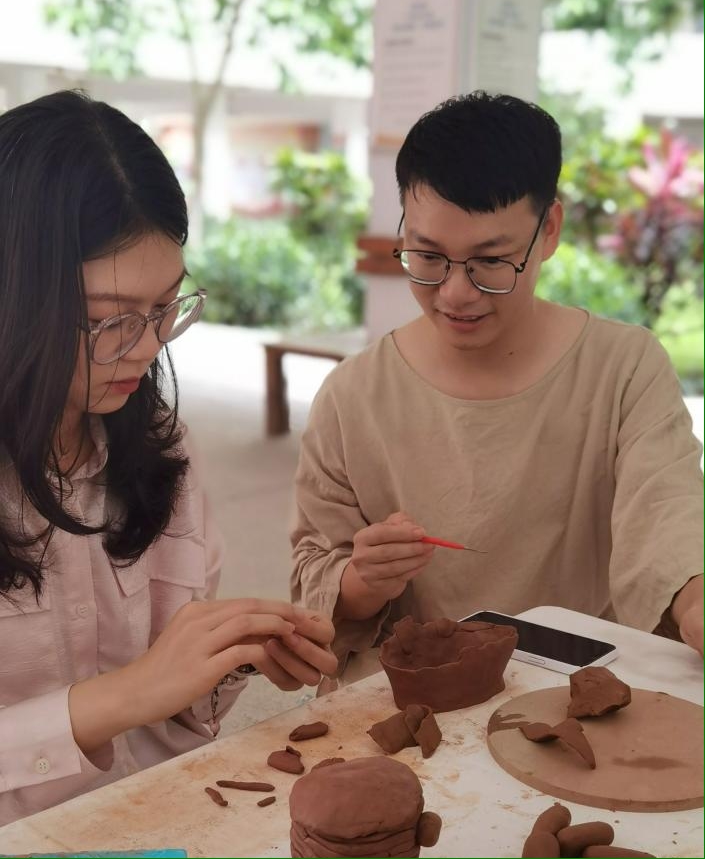 图5:学生制作红陶罐开心瞬间