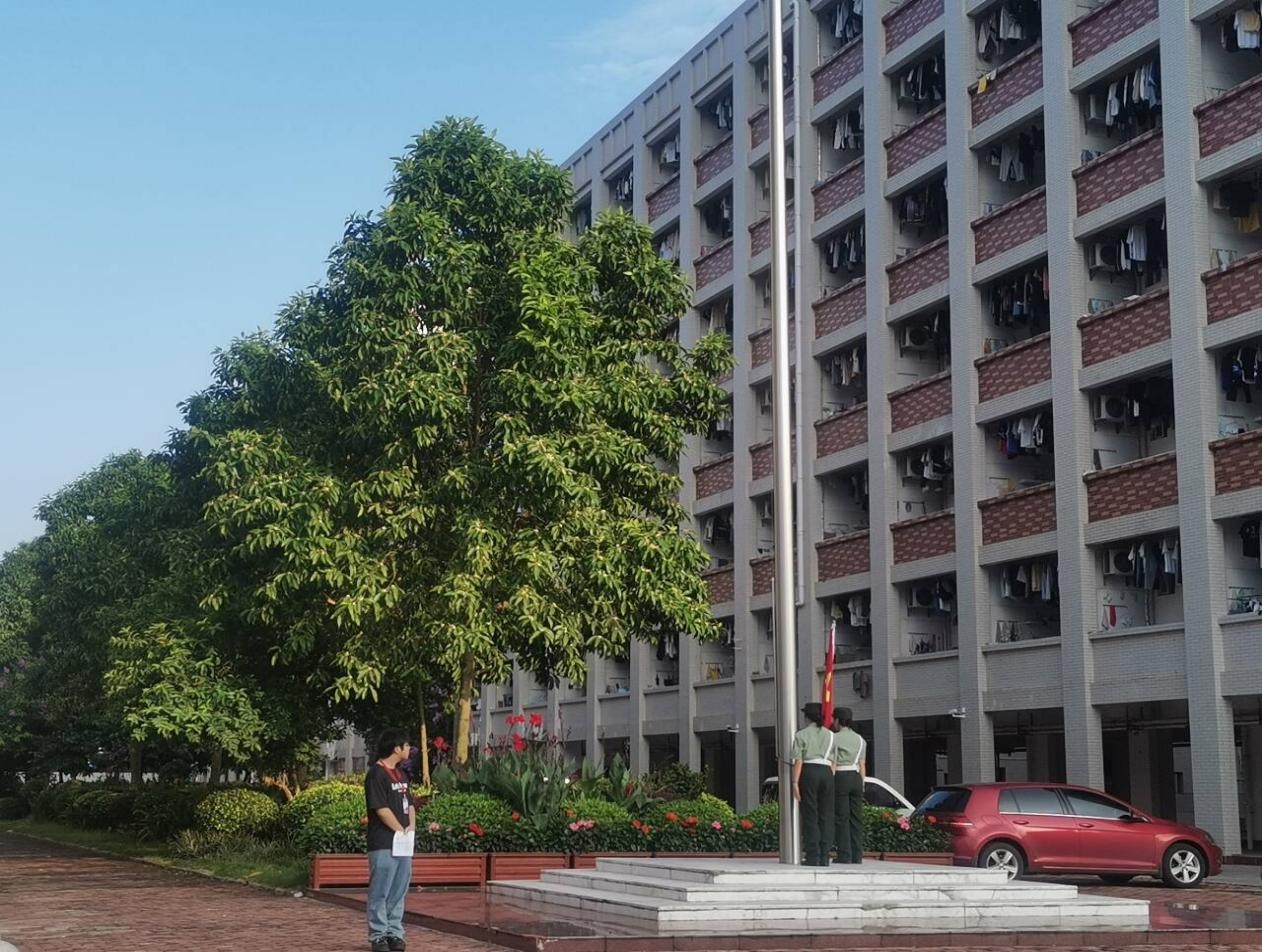 清晨的阳光洒满校园,微风拂过,带来一丝丝清凉。经贸学院于2024年5月27日在鹏飞校区举行第十四周升旗仪式,出席本次升旗的有鹏飞校区经贸学院的全体同学。