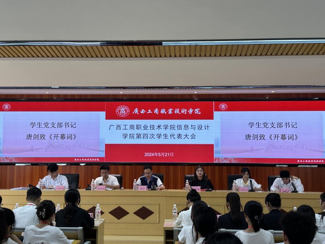 为了进一步规范我院学生会组织建设,切实履行学生会宗旨,使学生会工作朝着制度化、系统化、正规化方向发展,信息与设计学院于2024年5月21日下午在鹏飞校区2145会议室举行第四次学生代表大会。出席本次大会的有学院学生党支部书记唐剑、学院团委副书记韦斯娜、学院学生党支部宣传委员黎枝港、学院学生会主席团及学生代表。