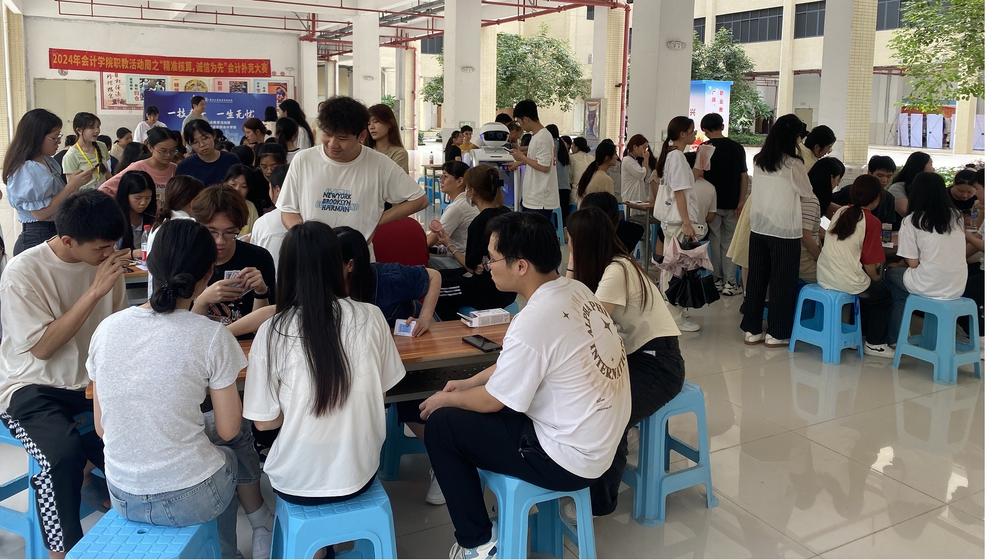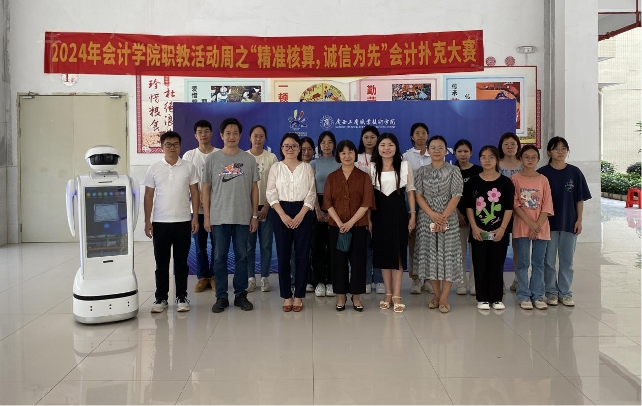 活动周中最引人注目的环节莫过于与智慧税务实训中心的智能机器人进行互动。这款机器人内含会计知识问答功能,通过大屏显示与智能语音交互技术自然迅速解答疑问。它借助数字化教学环境,直观展示会计知识,引导学生创新思维和实践。同学们通过模拟税务场景,提升实操能力,深入理解税务工作。 此外,同学们亲身感受了人工智能在职业教育中的应用,体验到科技带来的便捷和高效,对未来职场充满期待。这一创新教学方式得到了学生的高度认可,认为它极大地深化了税务实操的理解,为未来的职业发展奠定了坚实基础。 “精准核算,诚信为先”会计科目扑克比赛同样吸引了众多学生的目光,选手们分组竞技,选手们在紧张刺激的比赛中需迅速分析局势、制定战略,灵活调整战术,充分展现了选手们的专业素养和心理素质。