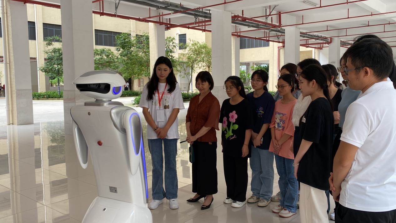 图一:会计学院师生与智慧税务实训中心智能机器人互动