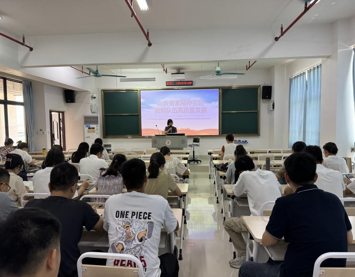 粟卫红带领全体教职工深刻认识教育家精神的时代价值。她详细阐述了在当今教育发展形势下,教育家精神犹如璀璨星辰,照亮教师队伍前行之路。尤其是在第 40 个教师节这个特殊的节点,教育家精神对于提升教育质量、培育优秀人才具有不可替代的重要意义。同时号召全体教职工深入领会其价值,学习卫兴华、黄大年、于漪等教育家的事迹,并将其融入日常教学工作中。