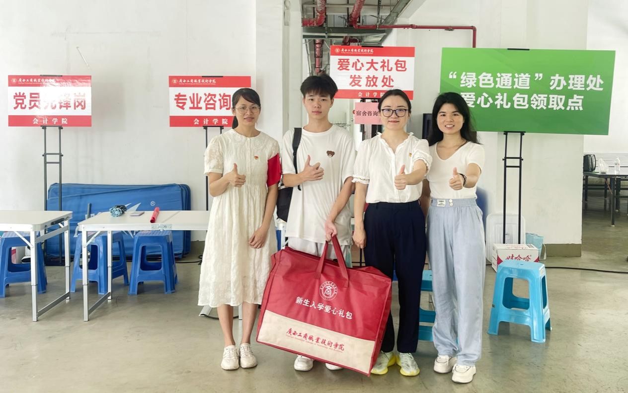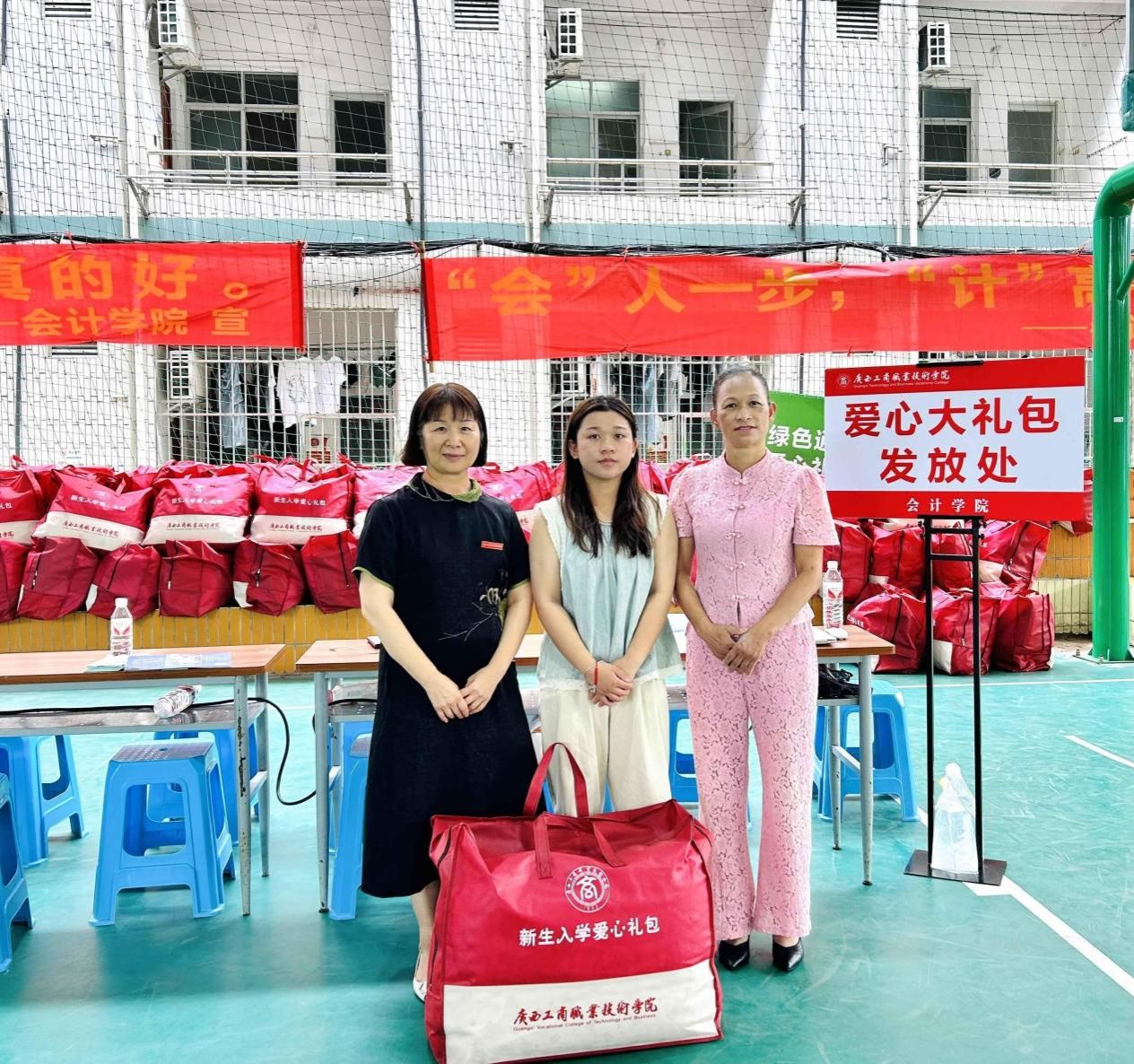 金秋送爽喜迎八方学子,丹桂飘香共祝美好未来。会计学院迎来了2024级新生,同学满载喜悦和祝福,怀揣理想和憧憬,走进校园。学校为家庭经济困难新生准备了“爱心大礼包”,为新生送上入校后的第一份温暖。9月6日,我院党总支书记、院长粟卫红以及副院长谭玉娥参加了此次活动,分别在中尧校区及武鸣校区给新生们发放学校精心准备的爱心大礼包。
