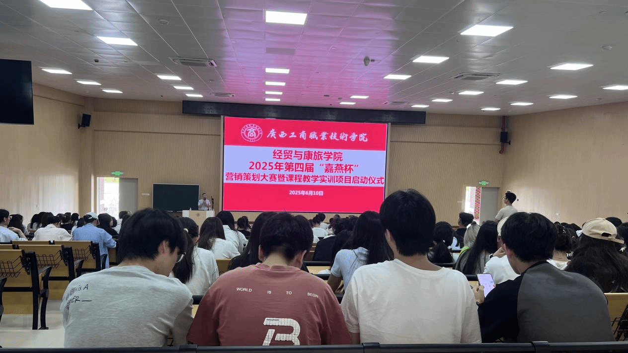 2025年6月10日,pp电子官方网站经贸与康旅学院2025年第四届“嘉燕杯”营销策划大赛暨课程教学实训项目启动仪式在武鸣校区举行。校企双方代表、师生两百多人共同参与活动。