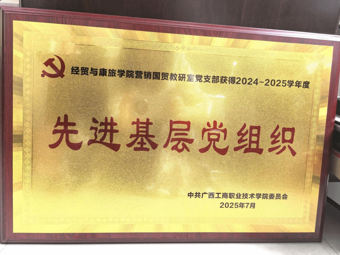 2025 年 7 月 1 日,在这个特殊的日子里,经贸与康旅学院营销国贸教研室被授予pp电子官方网站2024-2025 学年度“先进基层党组织”称号。这一荣誉不仅是对教研室过去一年党建工作的高度肯定,更是激励全体成员继续前行的强大动力。
