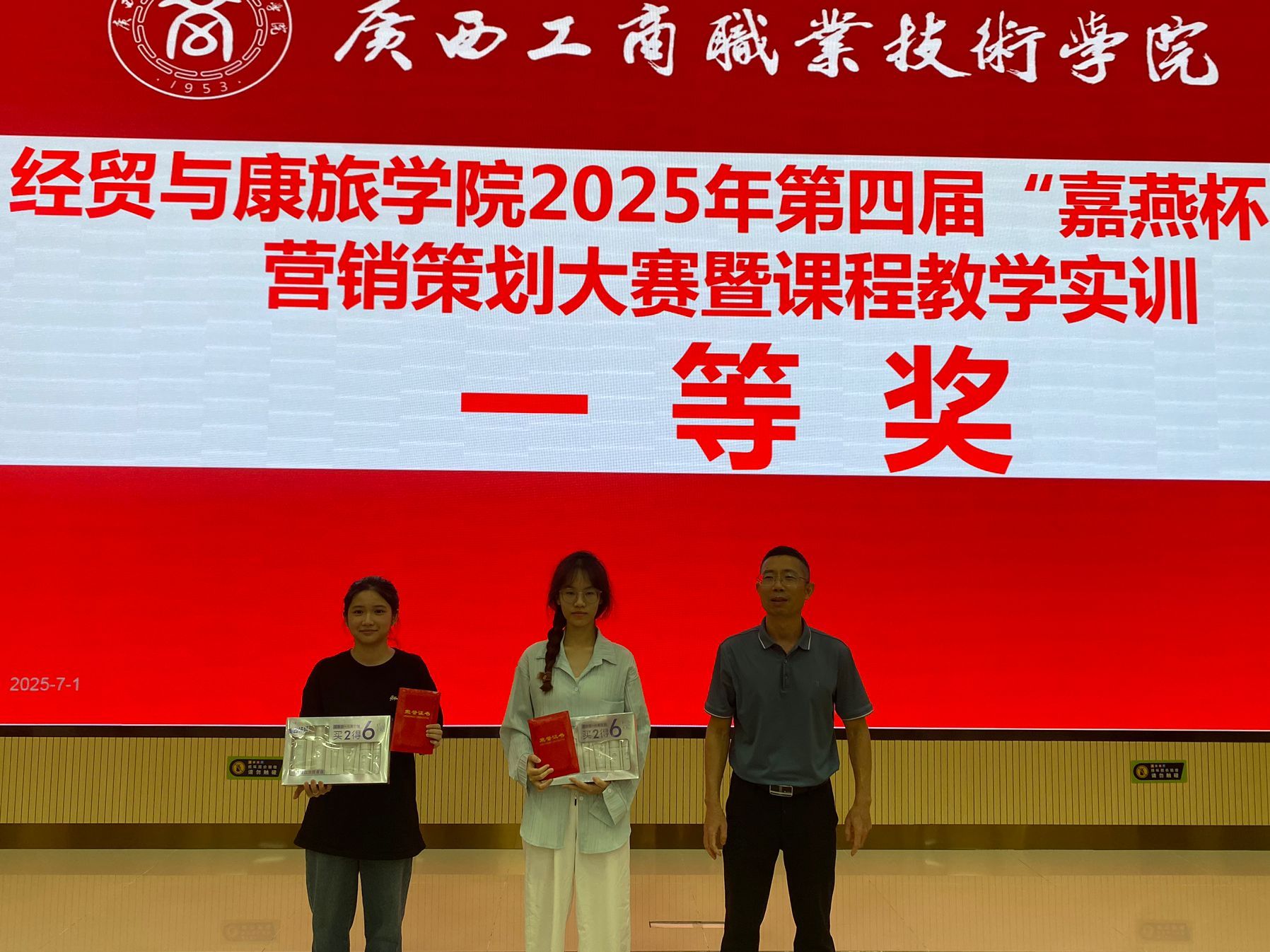 2025年7月1日,pp电子官方网站经贸与康旅学院2025年第四届“嘉燕杯”营销策划大赛暨课程教学实训项目总结大会在武鸣校区举行。学院教师代表、校企合作方代表及全体参赛学生齐聚一堂,全面回顾大赛成果,表彰优秀团队,展望产教融合深化路径。