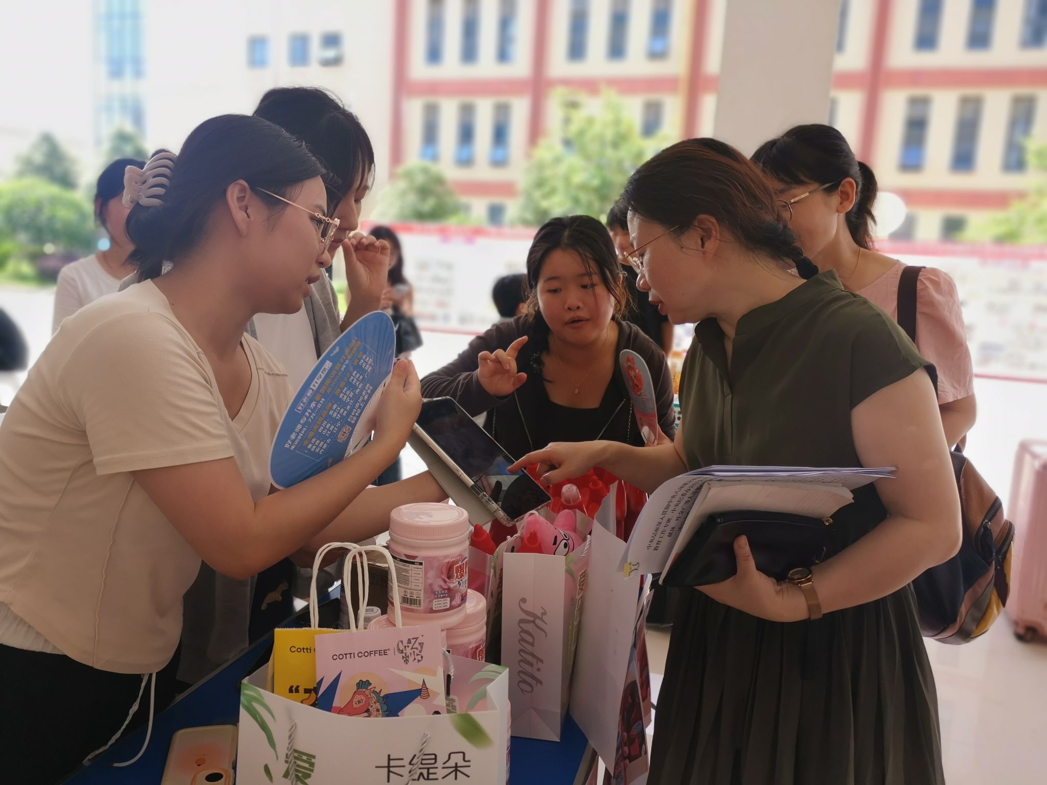 图为经贸与康旅学院李红梅院长现场观展