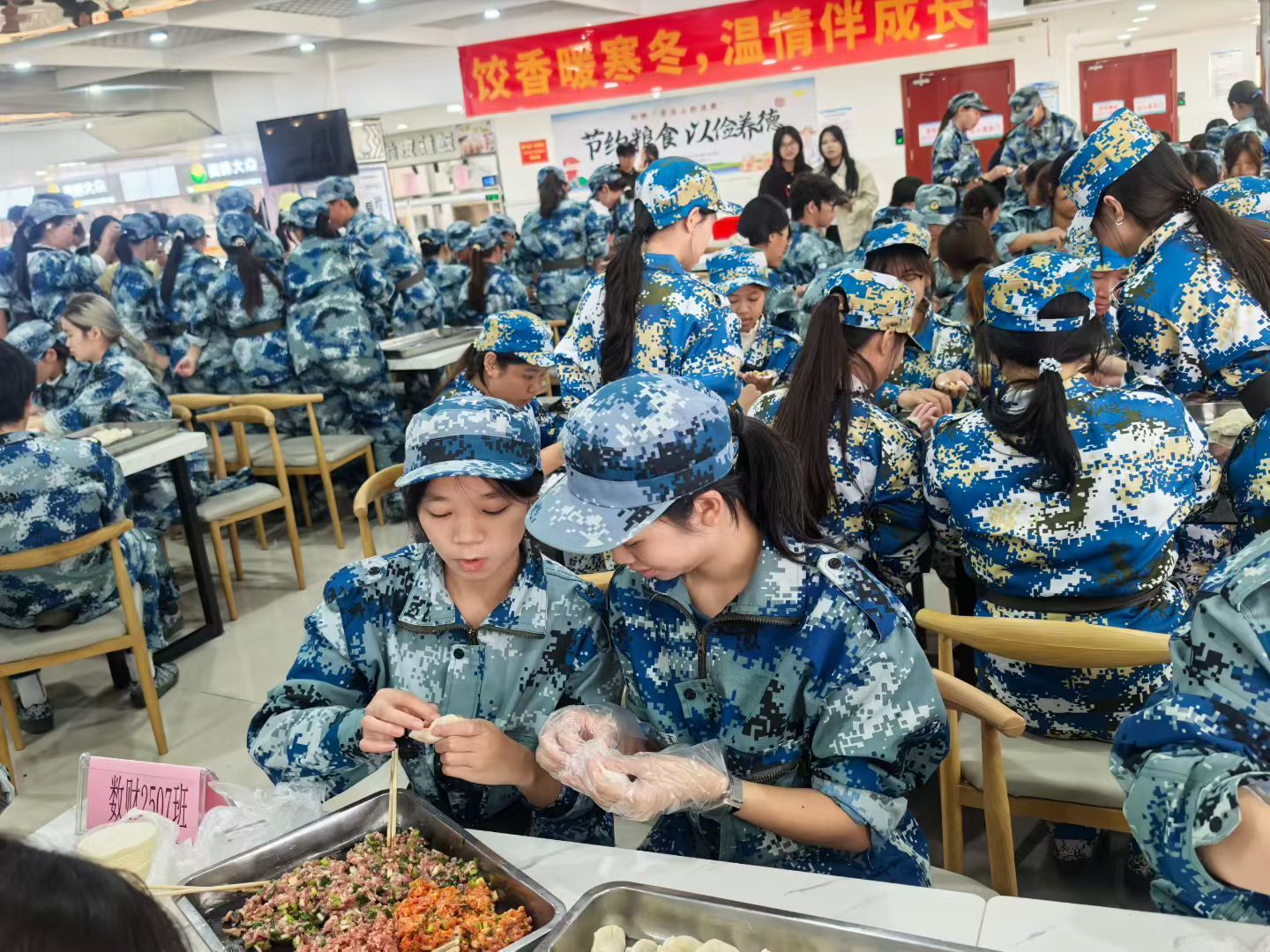 饺香四溢,笑语满堂!11月23日,一场名为“一盘饺子暖寒冬,一曲红歌励军魂”的主题教育活动在武鸣校区温情上演,师生们用亲手制作的饺子,共同书写了一段关于传承、感恩与成长的故事。财金学院2025级专兼职辅导员、26度辅导员工作室成员、团委学生会骨干、2024级学生代表及全体2025级新生参与活动。