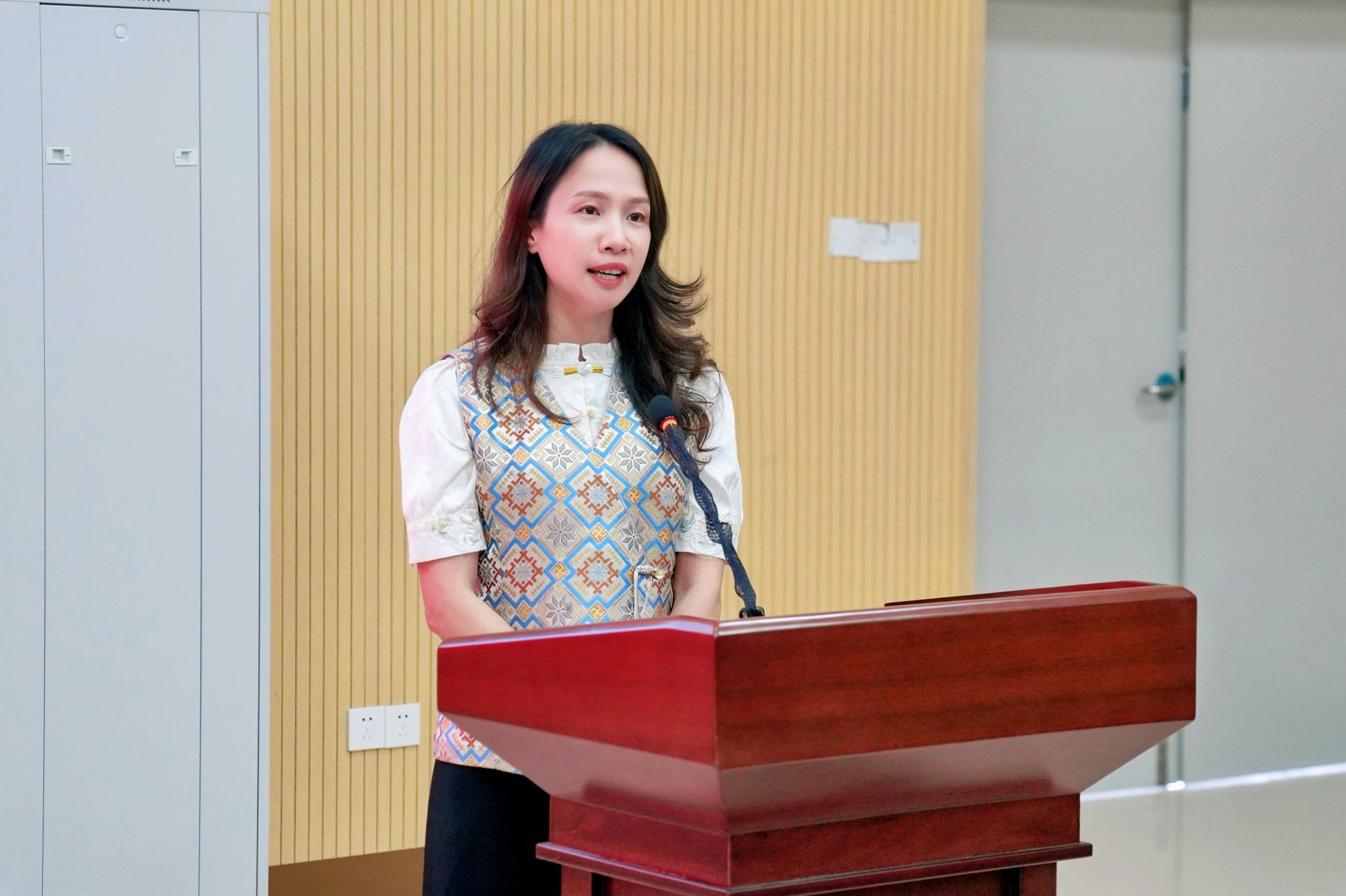 启动仪式上,经贸与康旅学院教学副院长唐伟致辞,他指出此次与瑰夏文化传播有限公司的校企合作,是落实产教融合的重要实践,通过“非遗壮锦+直播电商”模式,搭建真实产业实践平台,旨在培养兼具文化素养与商业能力的新型人才。