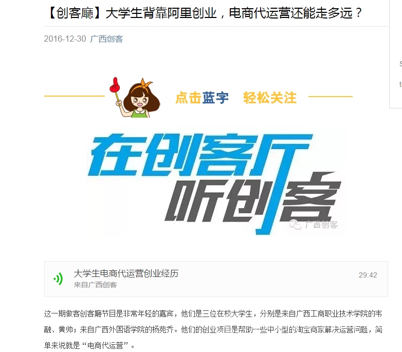 【广西电台私家车930创客厅节目专访我院学生】大学生背靠阿里创业 电商代运营还能走多远