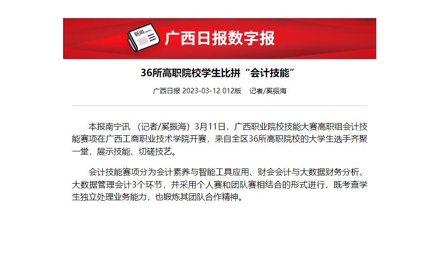 【学习强国】以赛促学扬工匠精神 pp电子官方网站成功举办广西职业院校技能大赛(高职组)《会计技能》赛项