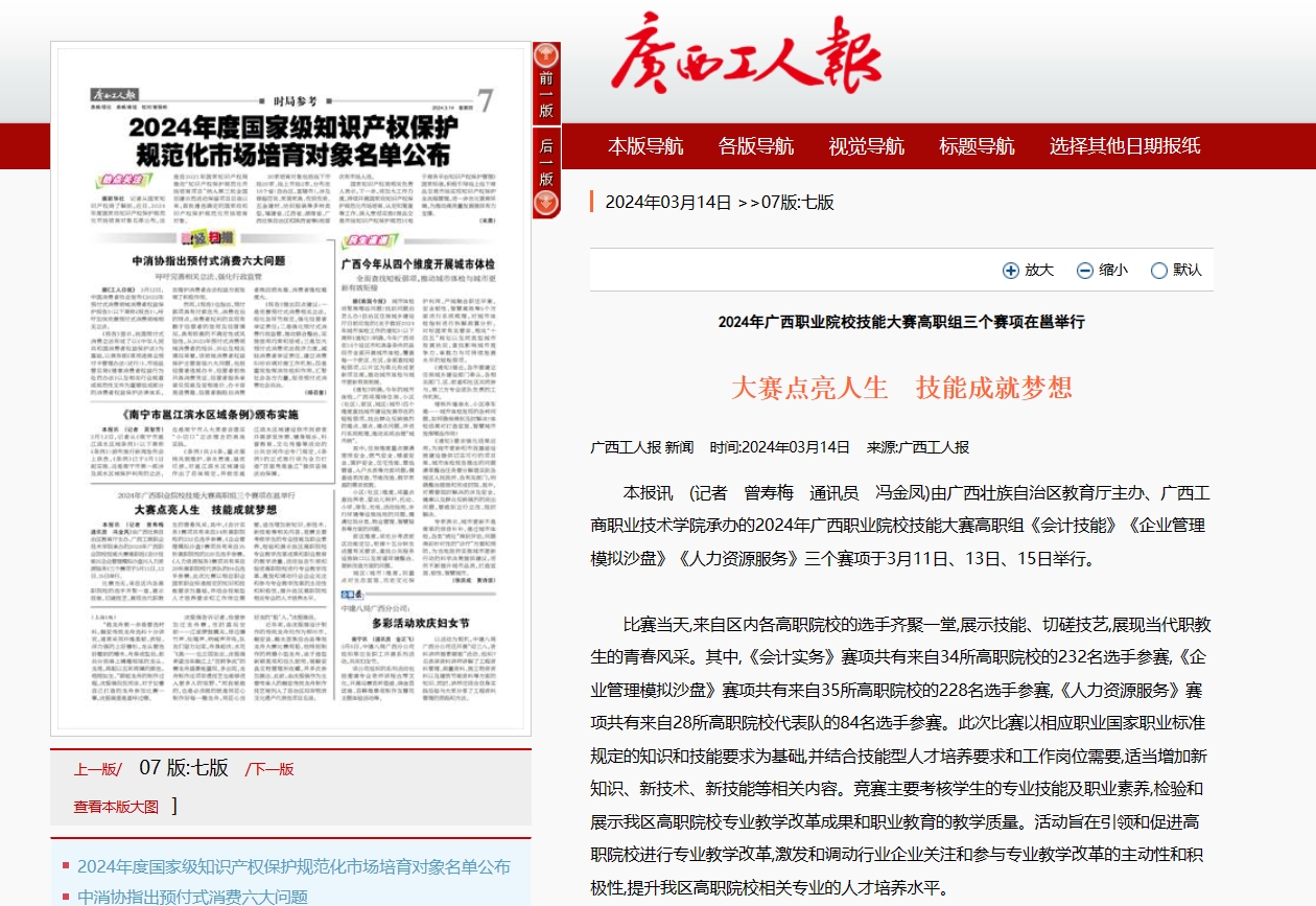 【广西工人报】2024年广西职业院校技能大赛高职组三个赛项在邕举行——大赛点亮人生 技能成就梦想