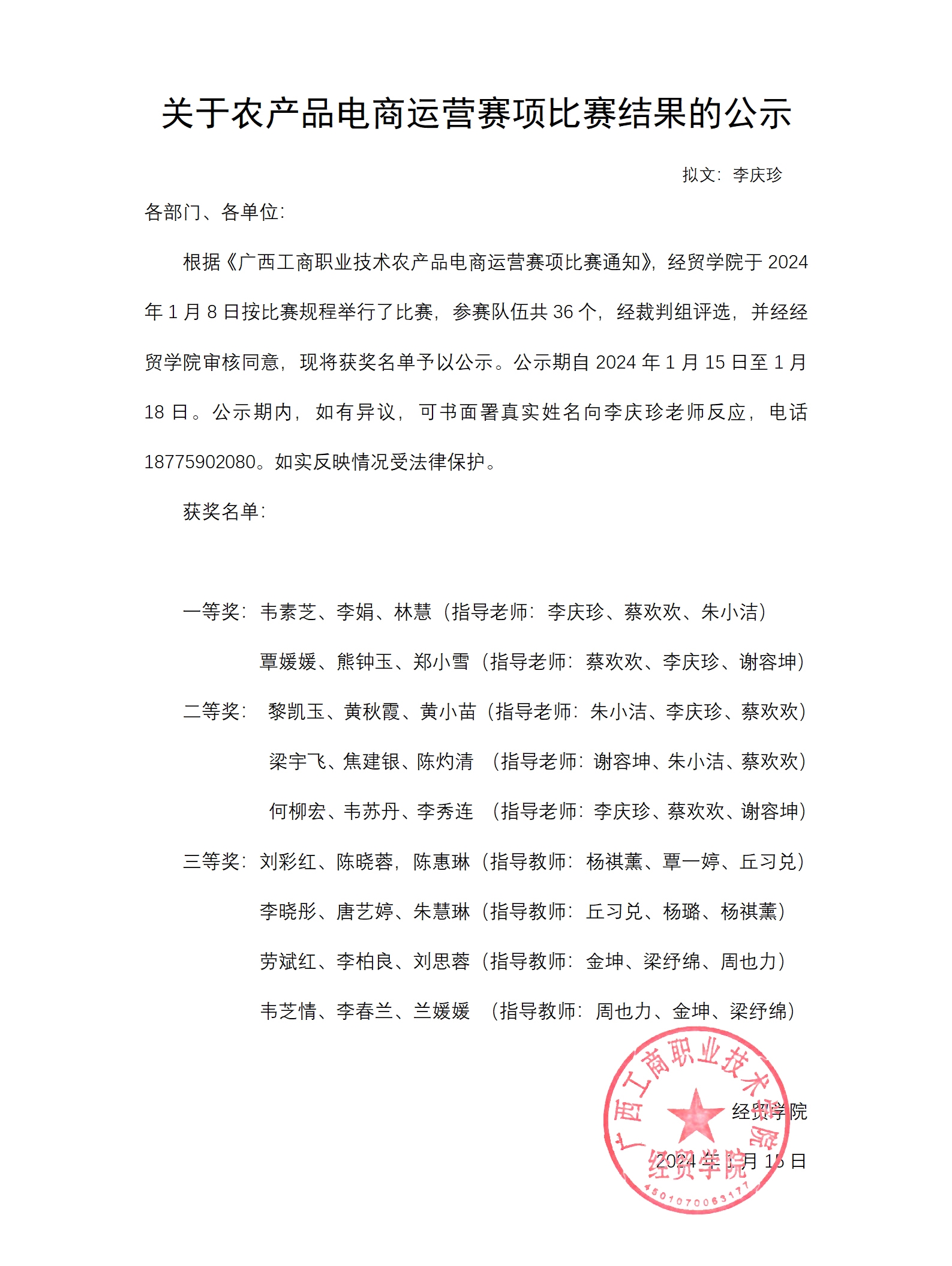 关于pp电子官方网站2023年学生技能竞赛-农产品电商运营赛项成绩公示