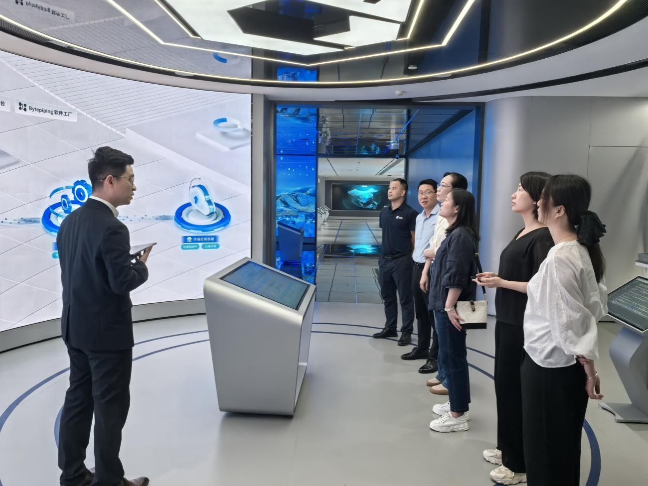 图一 pp电子一行参观润建股份人工智能展厅