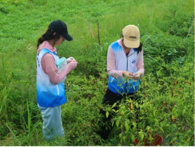 专业赋能,夯实产业根基。 团队食品检验检测技术与食品质量安全专业成员清晨即深入田间,开展精准的农产品抽样检测工作。此举旨在为摸清当地农产品质量安全底数、提升产品市场竞争力提供坚实的数据支撑,助力乡村产业提质增效。