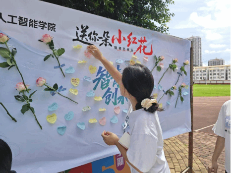 尊师重教,礼传深情。9月10日教师节当天,人工智能学院于鹏飞校区田径场大榕树下成功举办“送您一朵小红花”教师节感恩活动,旨在弘扬中华民族传统美德,搭建师生情感交流的桥梁,营造温暖和谐的校园文化氛围。