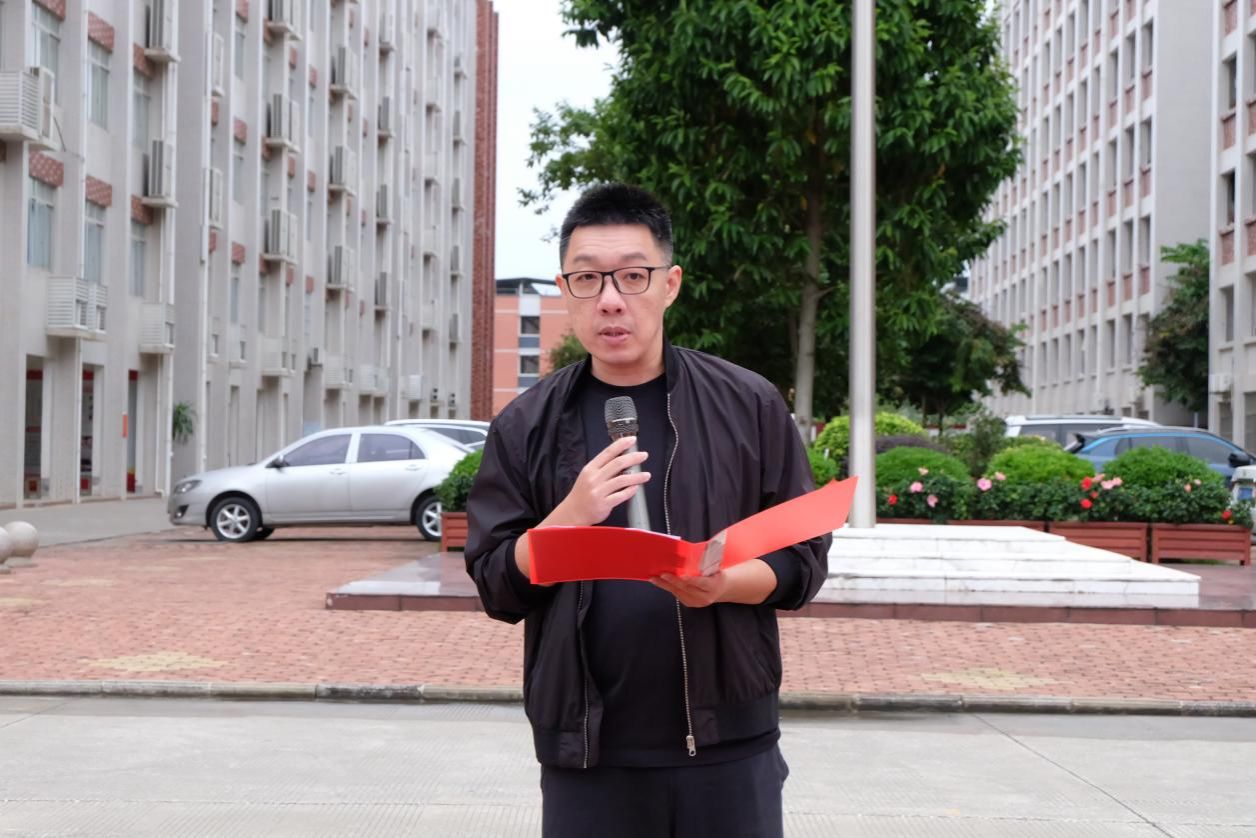 为增强师生反恐应急意识,提升校园安全防护能力,2025年11月10日清晨,人工智能学院在鹏飞校区举行升国旗仪式,并开展以“学习反恐应急技巧,筑牢校园安全防线”为主题的国旗下讲话活动。学院党总支书记庞良,教师代表李丽凤、陈宇烨、李鸳及2025级全体学生参加本周升旗仪式。