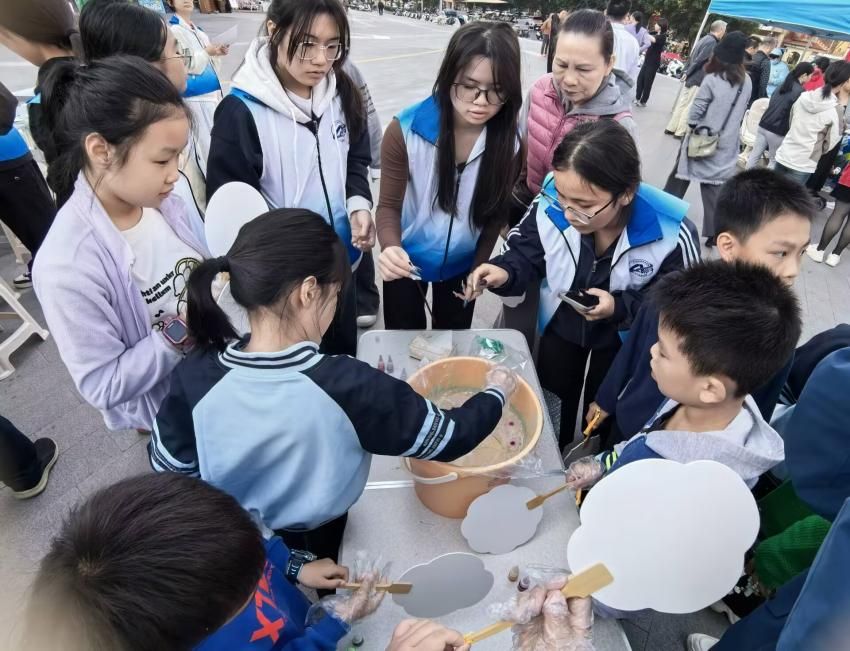 漆扇非遗手工实践活动中,师生积极承担文化传承角色,深入理解漆扇工艺的历史脉络与艺术特色,向社区居民及青少年介绍漆扇制作技艺,并现场指导选料、上漆、构图等关键步骤,让大家在动手体验中感受传统工艺的独特魅力。