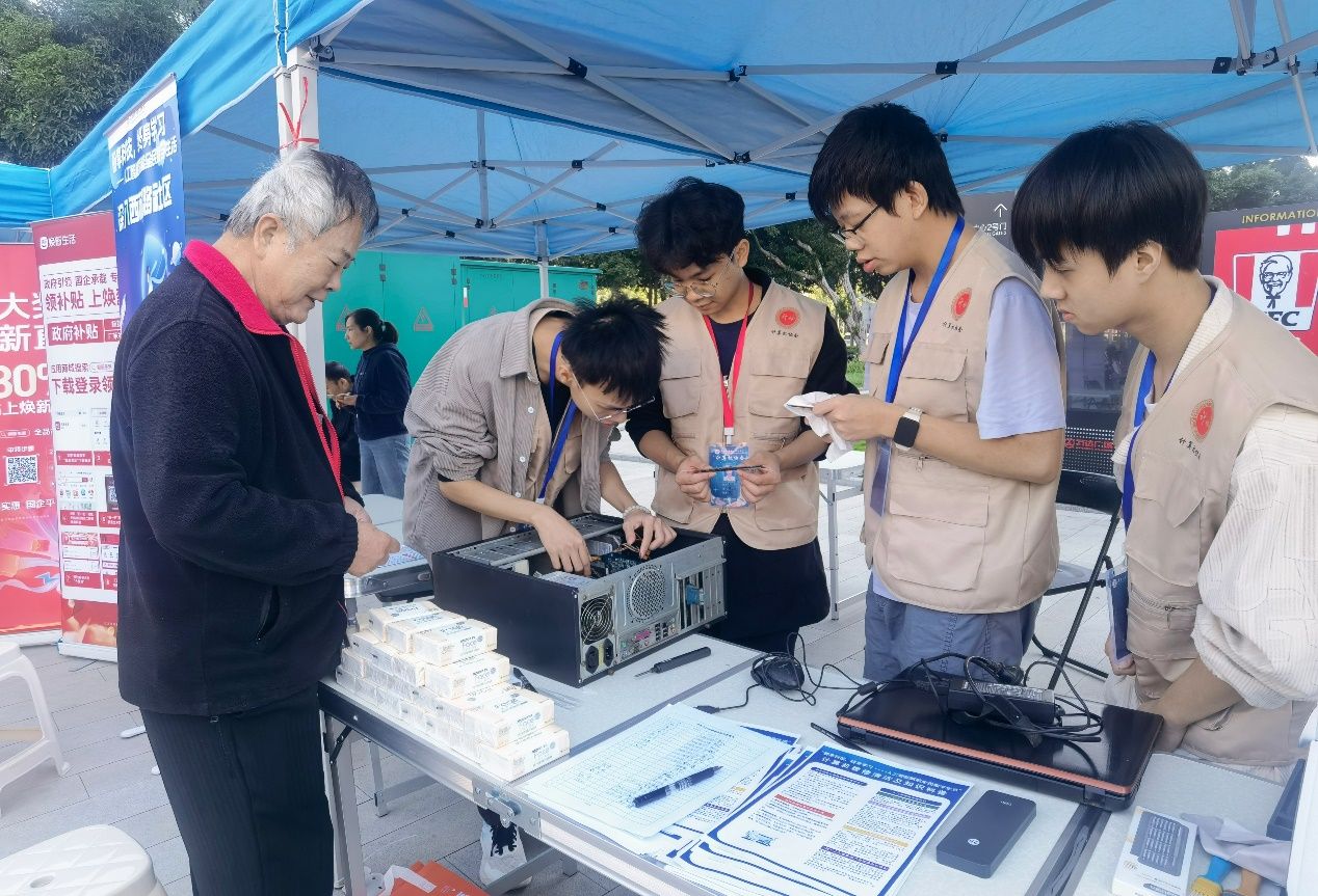 维修点志愿者则依托专业能力,为市民提供计算机硬件检测、简易故障排查与设备清洁等服务,解决日常使用中的常见问题。过程中,他们还主动讲解设备维护与安全使用知识,增强市民的居家自行维护能力。活动在热烈而有序的氛围中顺利进行,获得参与市民的广泛认可。